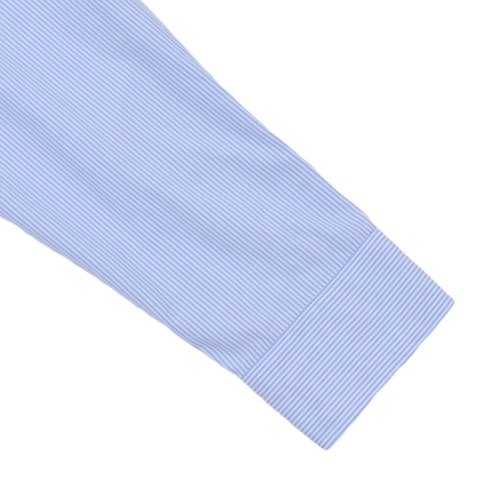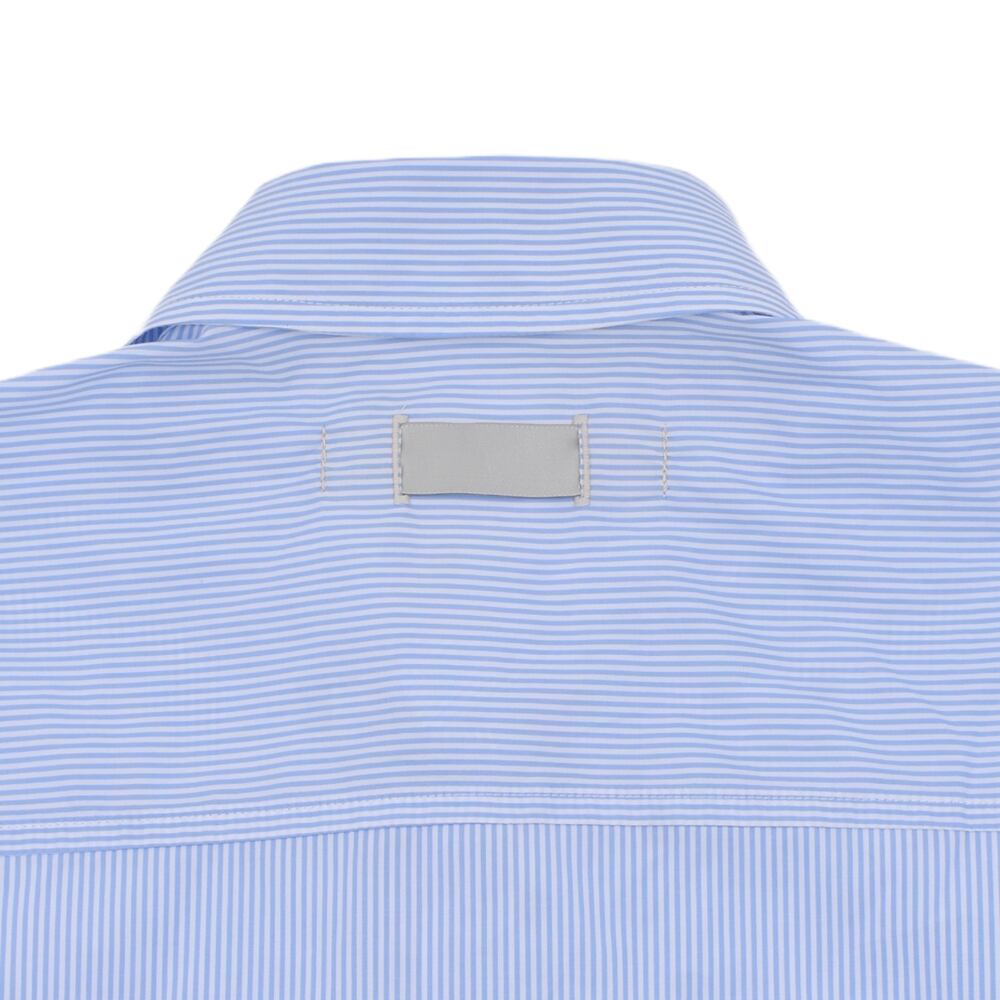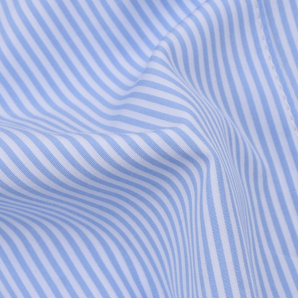 胸ポケットがアクセントになったライトブルーのシャツ。