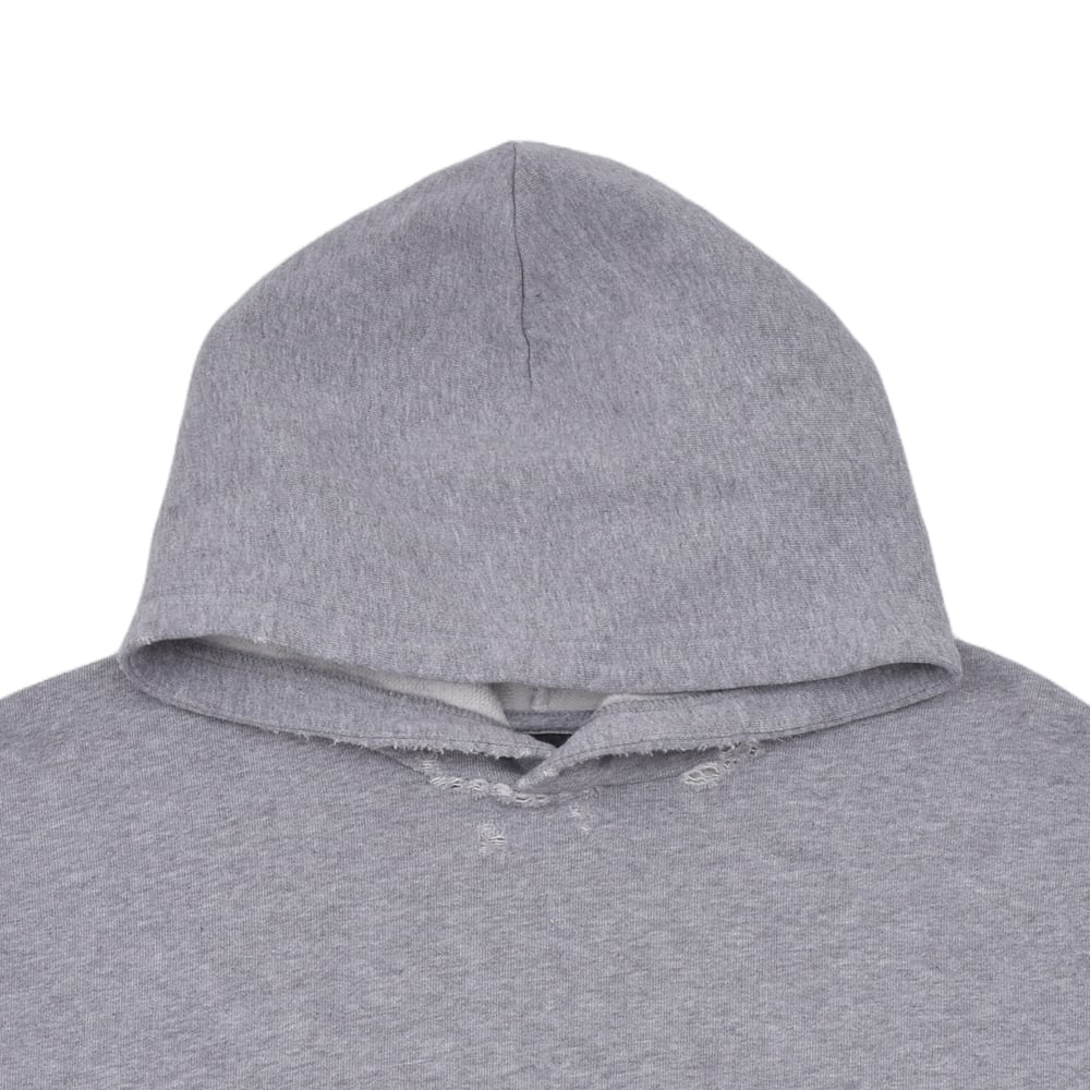 A grey pullover hoodie with an eye-catching "BALENCIAGA" logo that incorporates an American flag motif. The soft sweatshirt fabric and loose fit make it extremely comfortable to wear. It's perfect for casual styling, as well as street and mode mixes. The front kangaroo pocket and hooded design combine practicality and fashion.