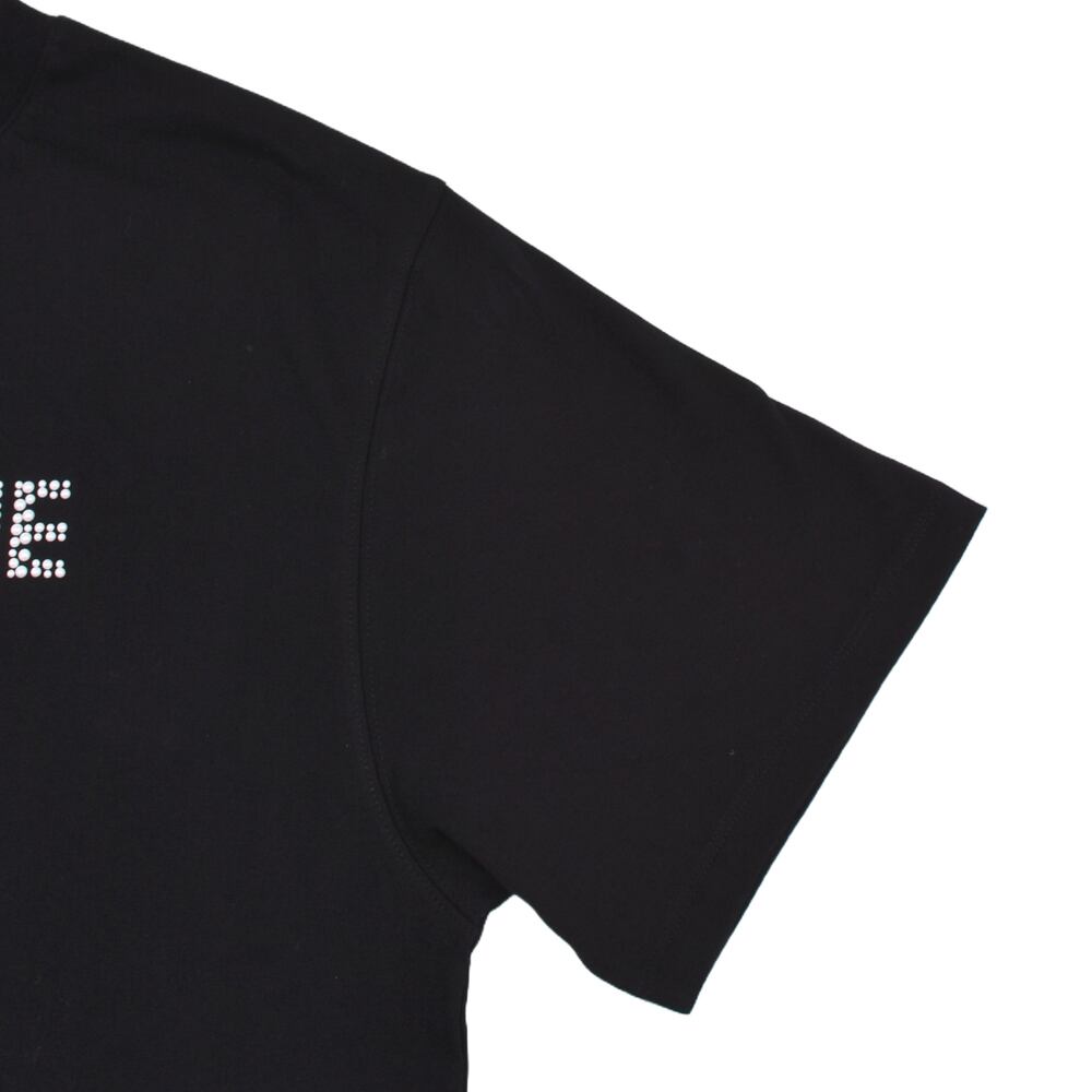 This black T-shirt features striking rhinestones on the front. The eye-catching logo in the center creates a perfect mix of luxury and modern style. The slightly relaxed silhouette is perfect for the trendy oversized style. With its simple yet striking look, it's the perfect piece to become the focal point of your outfit.
