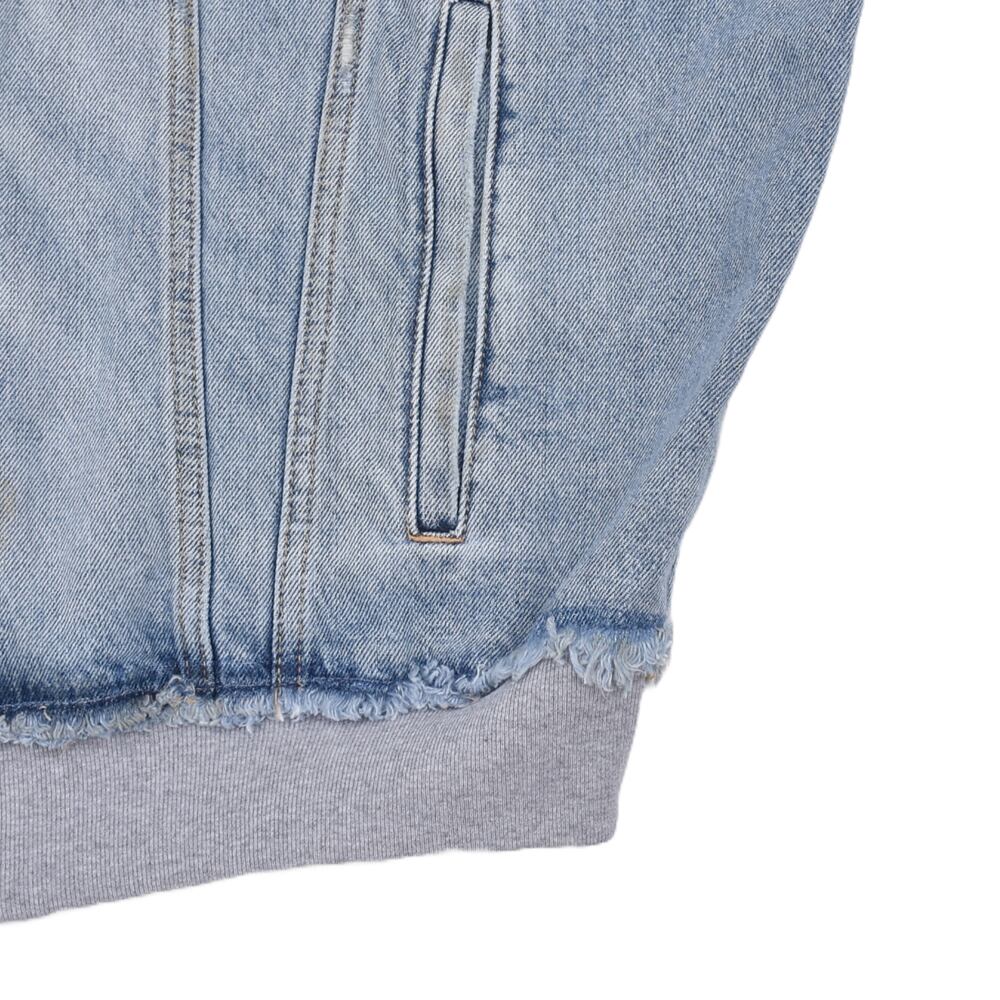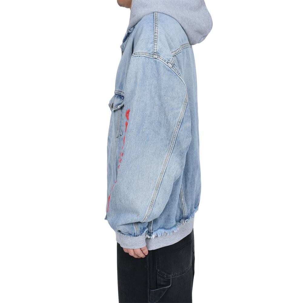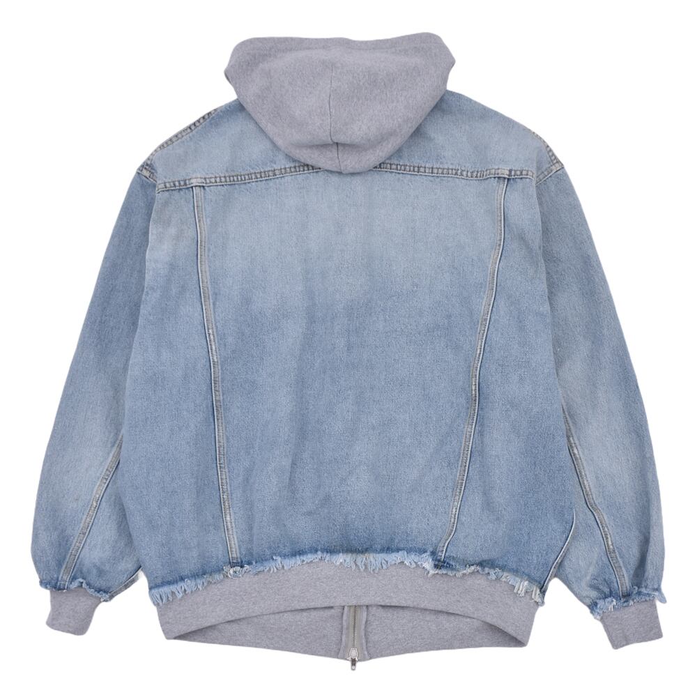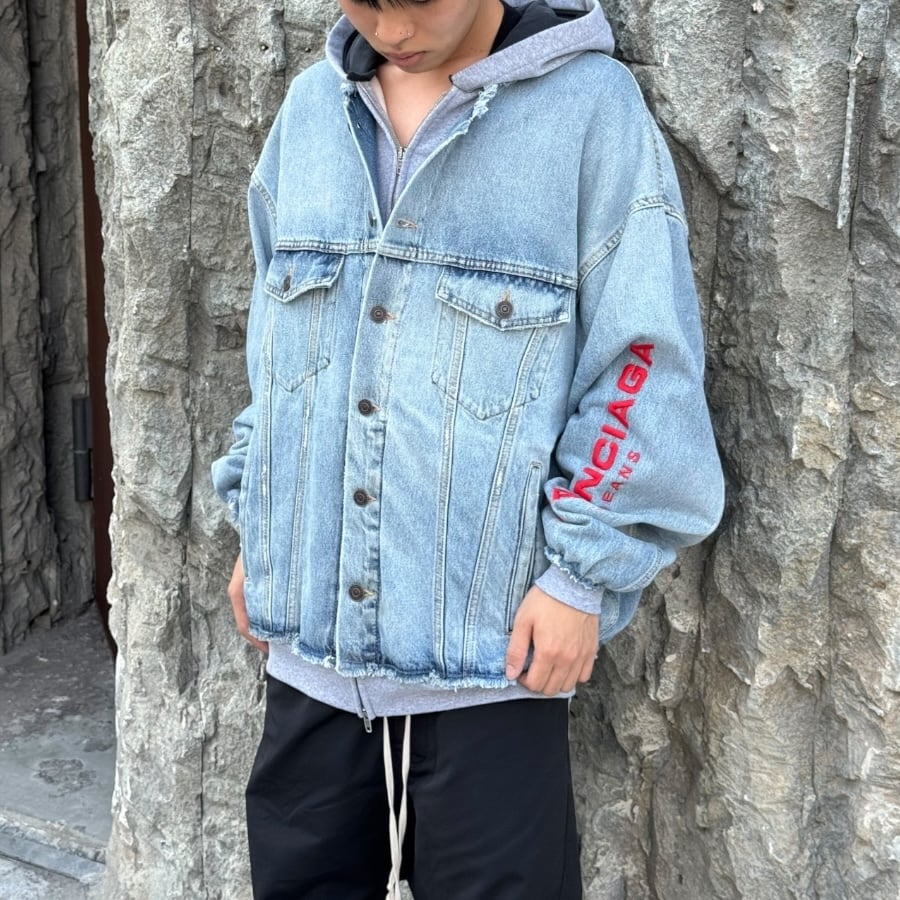 A combination of denim and sweatshirts. When you unbutton it, it looks layered and can be worn alone as a street style outfit. It's oversized and doesn't feel heavy, so it can be used as a light outerwear.