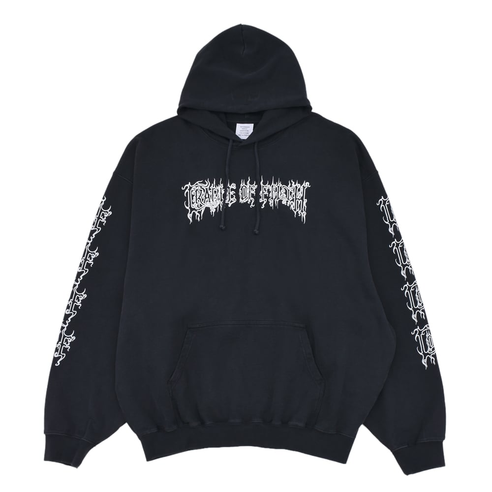 ブラックのボディに重厚感あるロゴデザインが映える、CRADLE OF FILTH フーディー。