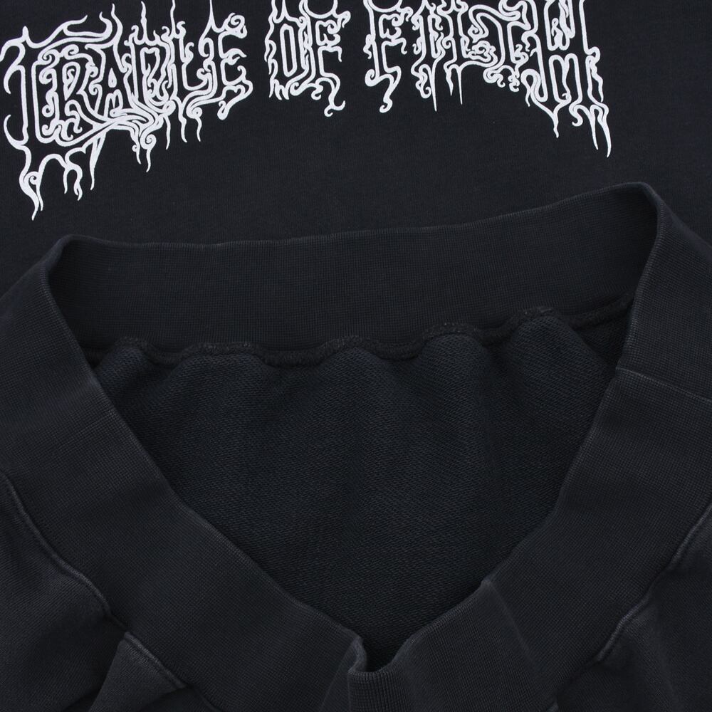 The CRADLE OF FILTH hoodie features a bold logo design that stands out against the black body. The sharp graphic font on the front and both sleeves creates a gothic and metal mood, making it a striking piece. The relaxed silhouette and fleece lining make it a must-have item for fall and winter. It's the perfect accent piece for rock, punk, and street styles.