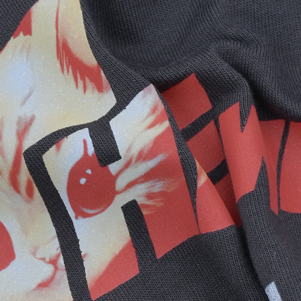 裾付近に配されたシルバーの「POLIZEI(警察)」グラフィックが、ミニマルなブラックに公的な緊張感と反逆的なエッジを添える、ハイエンドなラウンジウェアです。