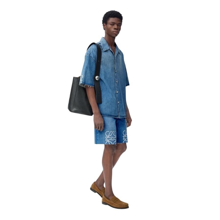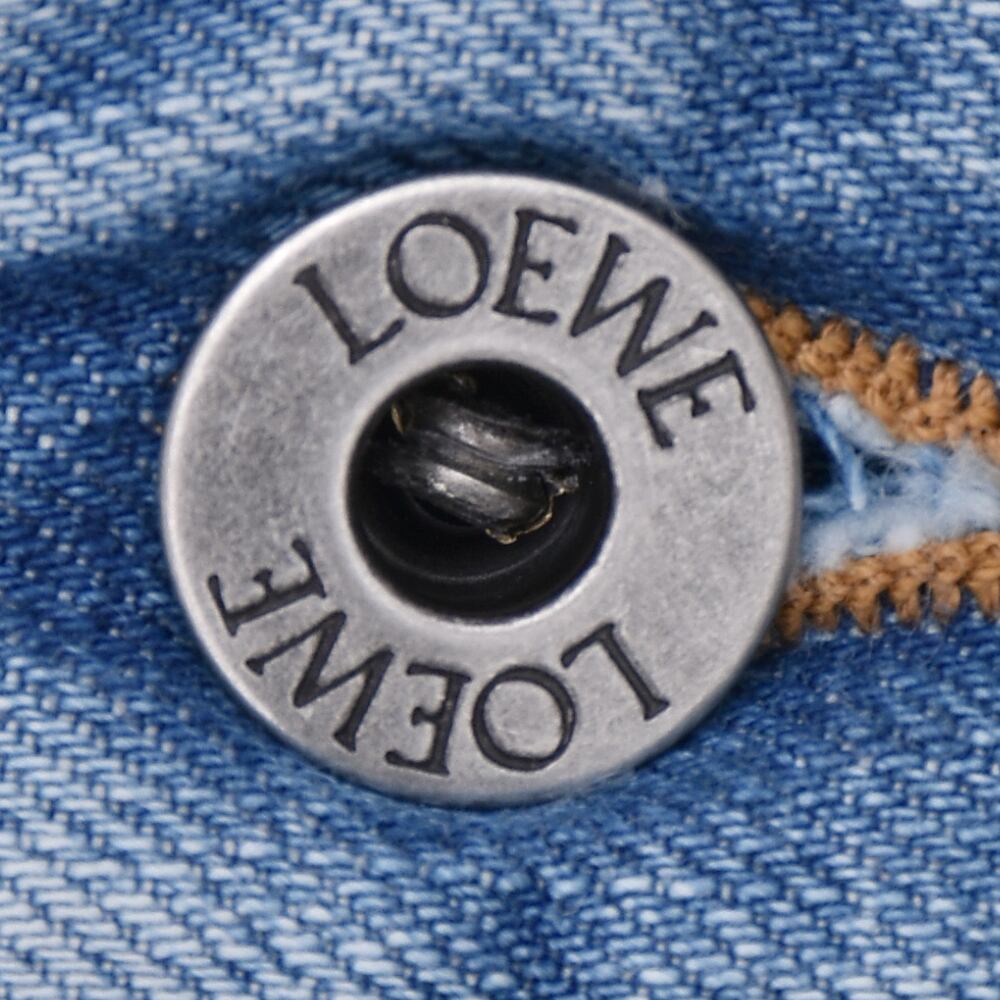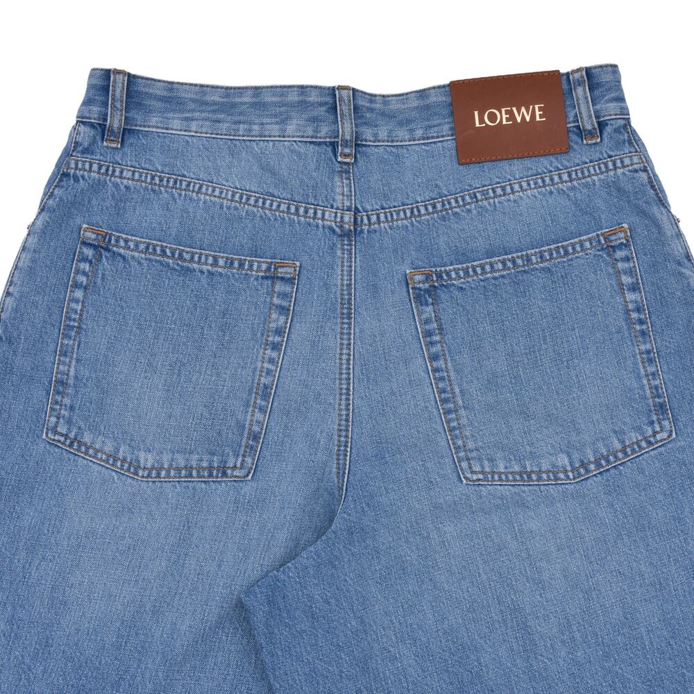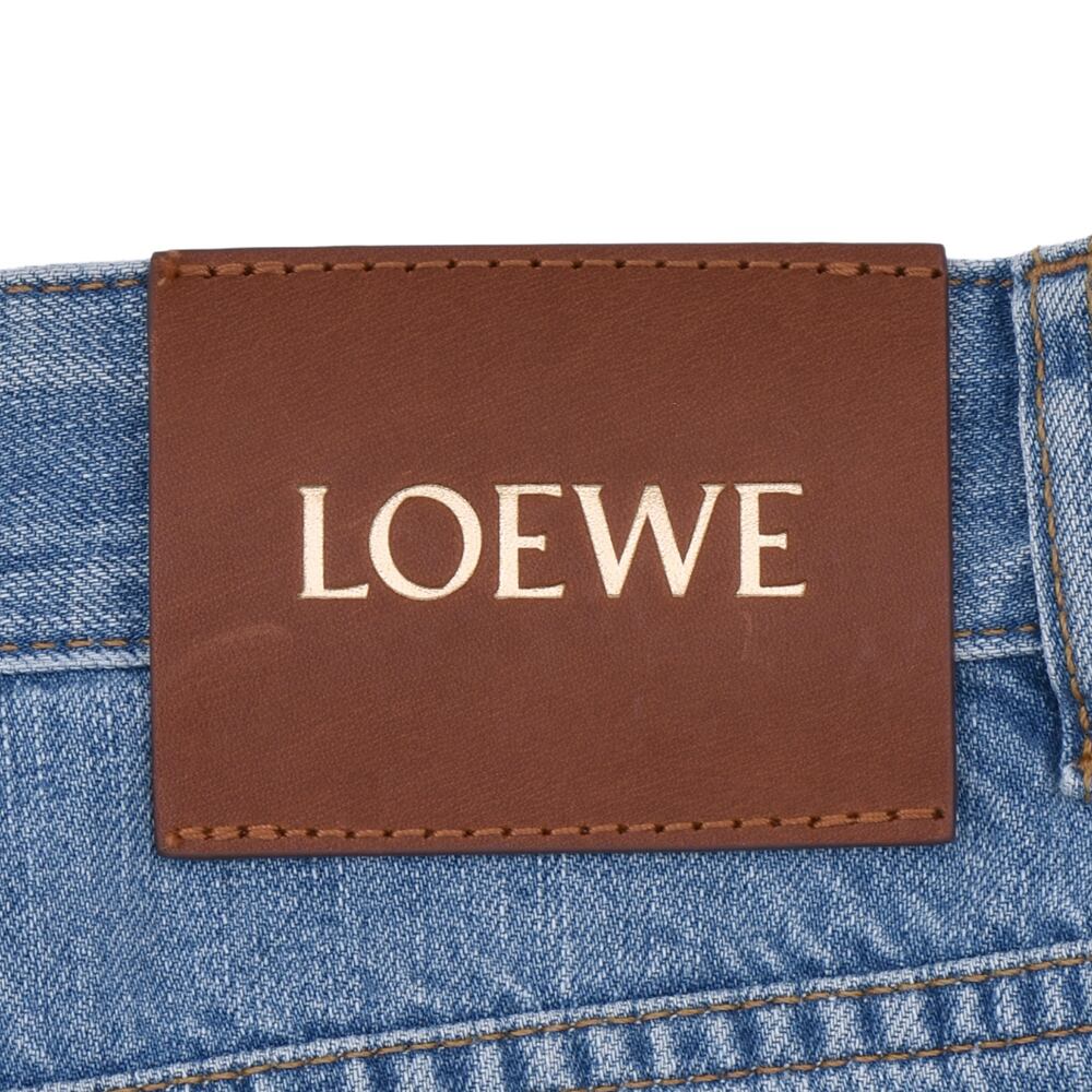 Regular fit, regular length, mid-waist, hidden button closure, and a LOEWE-embossed leather patch at the back.