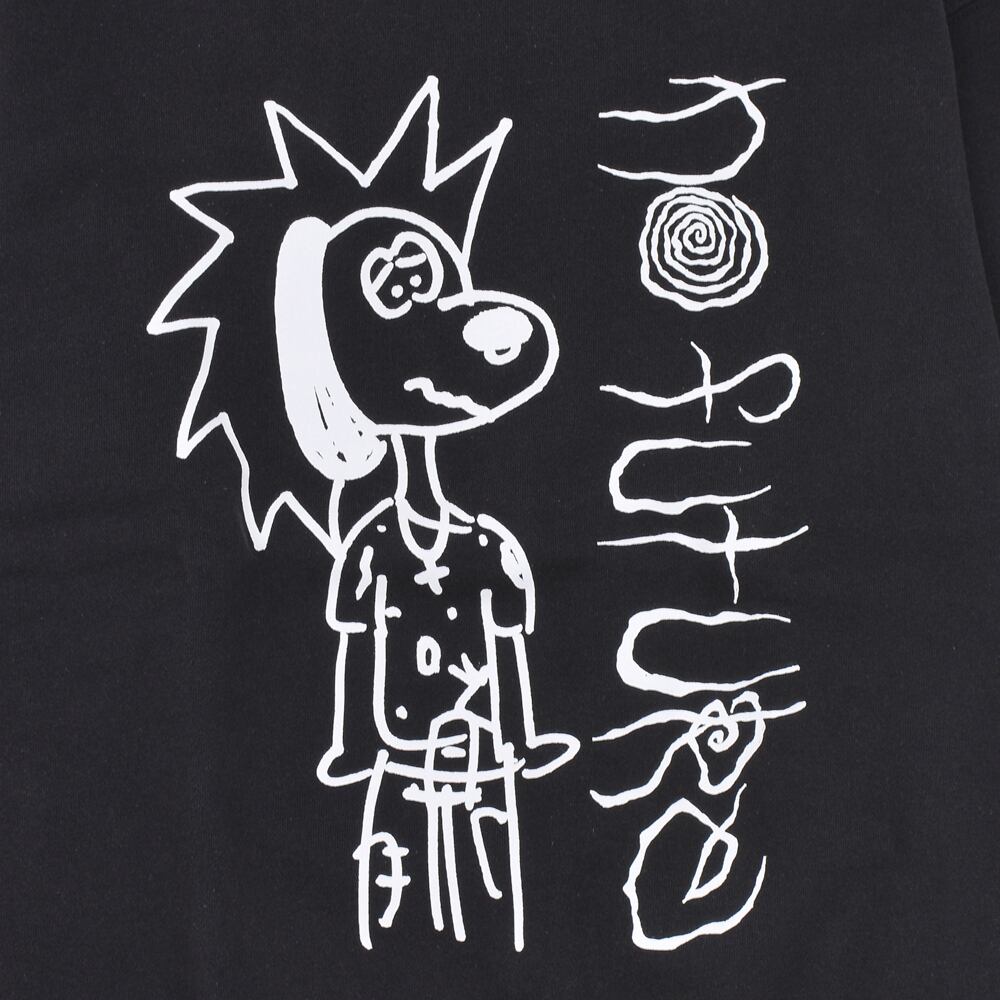 フロントには、アーティスティックに描かれたモチーフをあしらい、独特の存在感を放ちます。モノトーンのデザインながらインパクトは抜群で、シンプルなボトムスと合わせるだけでスタイリングの主役に。ユニセックスで着用でき、ストリートからカジュアルまで幅広いコーディネートにマッチします。