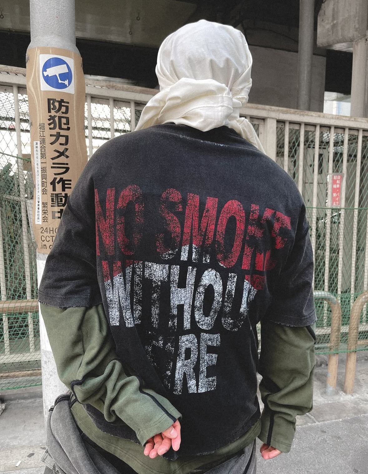 【ARNODEFRANCE】"AYIN EXCLUSIVE" VINTAGE T-SHIRT 'NO SMOKE WITHOUT FIRE'