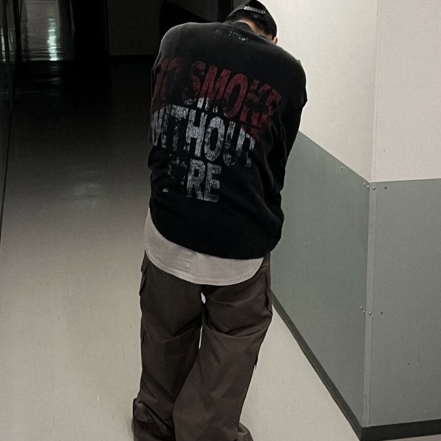 This is a T-shirt boldly printed with cigarette package-style graphics at the front. It has been treated with a vintage-style wash for an enjoyable feel similar to that of used clothing. With a moderately loose silhouette, it pairs perfectly with street and casual styles.