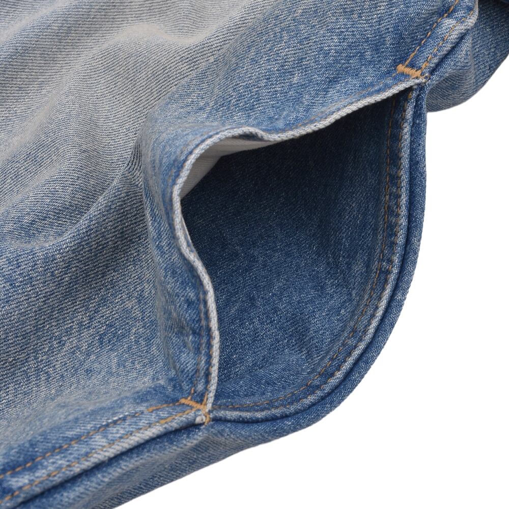 This denim shirt exudes a vintage feel. It has been washed to create a subtle fade, creating a sophisticated look. Double pockets with flaps on the chest add a work-style touch. The short sleeves offer a cool look, and it can be worn on its own as a top, or layered over a T-shirt as a light outer layer.