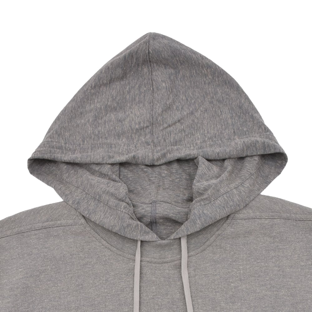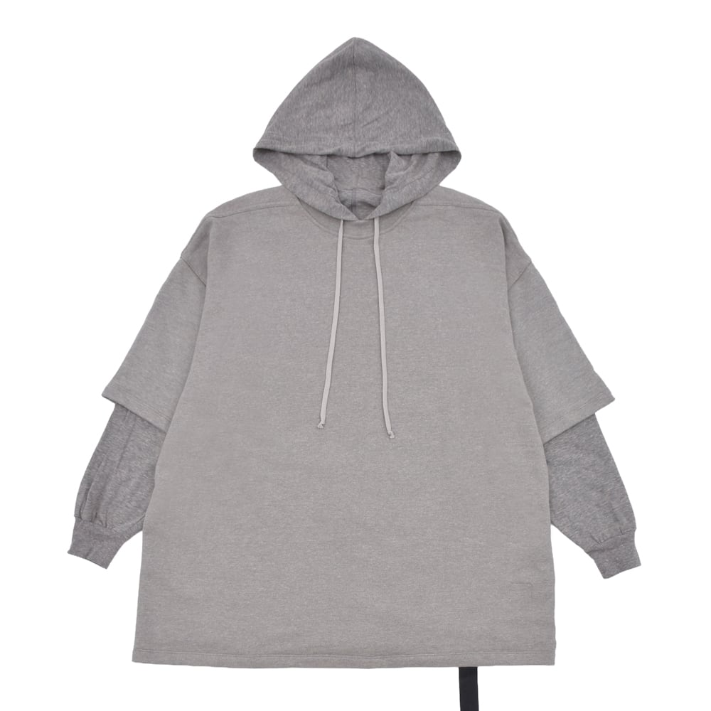 フードにドローストリングが施され裾と袖にロール状のディテール