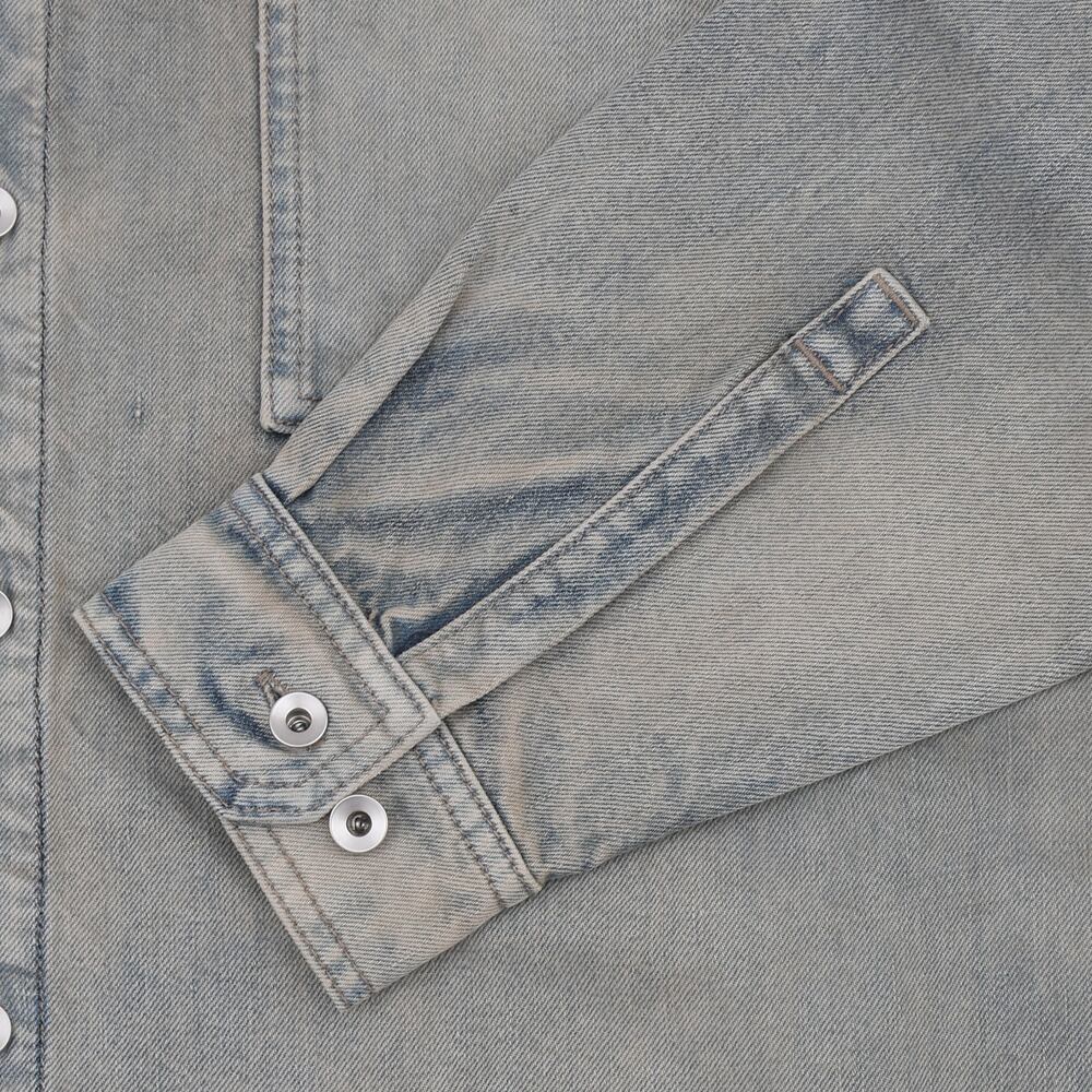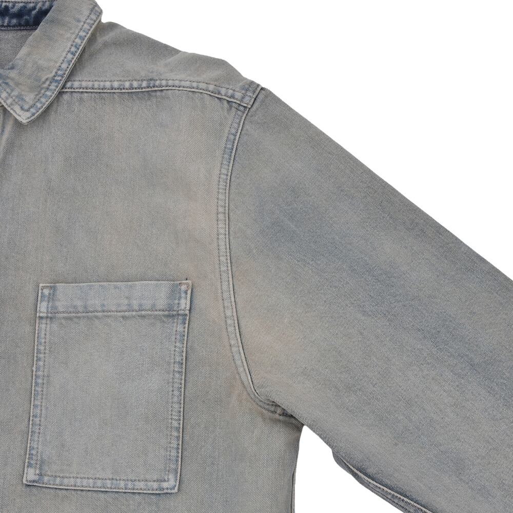 This denim shirt exudes a vintage feel. The wash processing creates a sophisticated look with a subtle fade, making it a casual yet striking piece. The large pockets on both sides of the chest add a design accent and are also practical. It can be worn as a jacket or a shirt, making it a versatile piece that can be worn in any season. A recommended piece that is simple yet trendy.