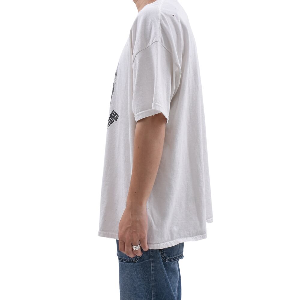 ヴィンテージ感あふれるtee。フロントのグラフィックがストリート感のあるアートな仕上がりになっています。程よいダメージ加工や色褪せが、リアルなユーズドライクな雰囲気を演出。ゆったりとしたシルエットで、ラフに着こなすだけでコーディネートの主役になる一枚です。デニムやカーゴパンツとの相性も抜群。