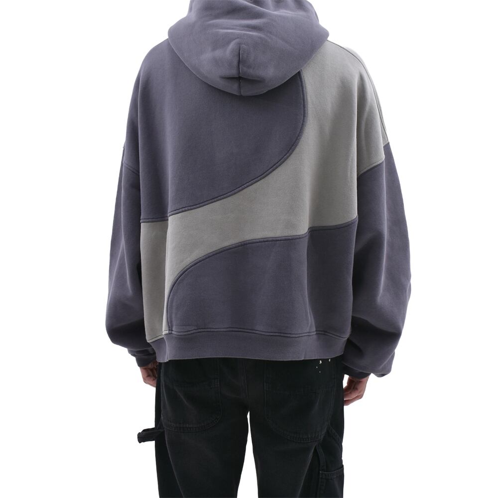 This is a pullover hoodie that showcases ERL's playful spirit and design. It features a bold switching pattern combining dark gray and light gray, making it a standout piece. The brand logo is subtly embroidered on the chest, adding a simple yet elegant accent. With a moderately loose silhouette, this item offers a relaxed wear experience. It is recommended as a key piece for casual outfits.