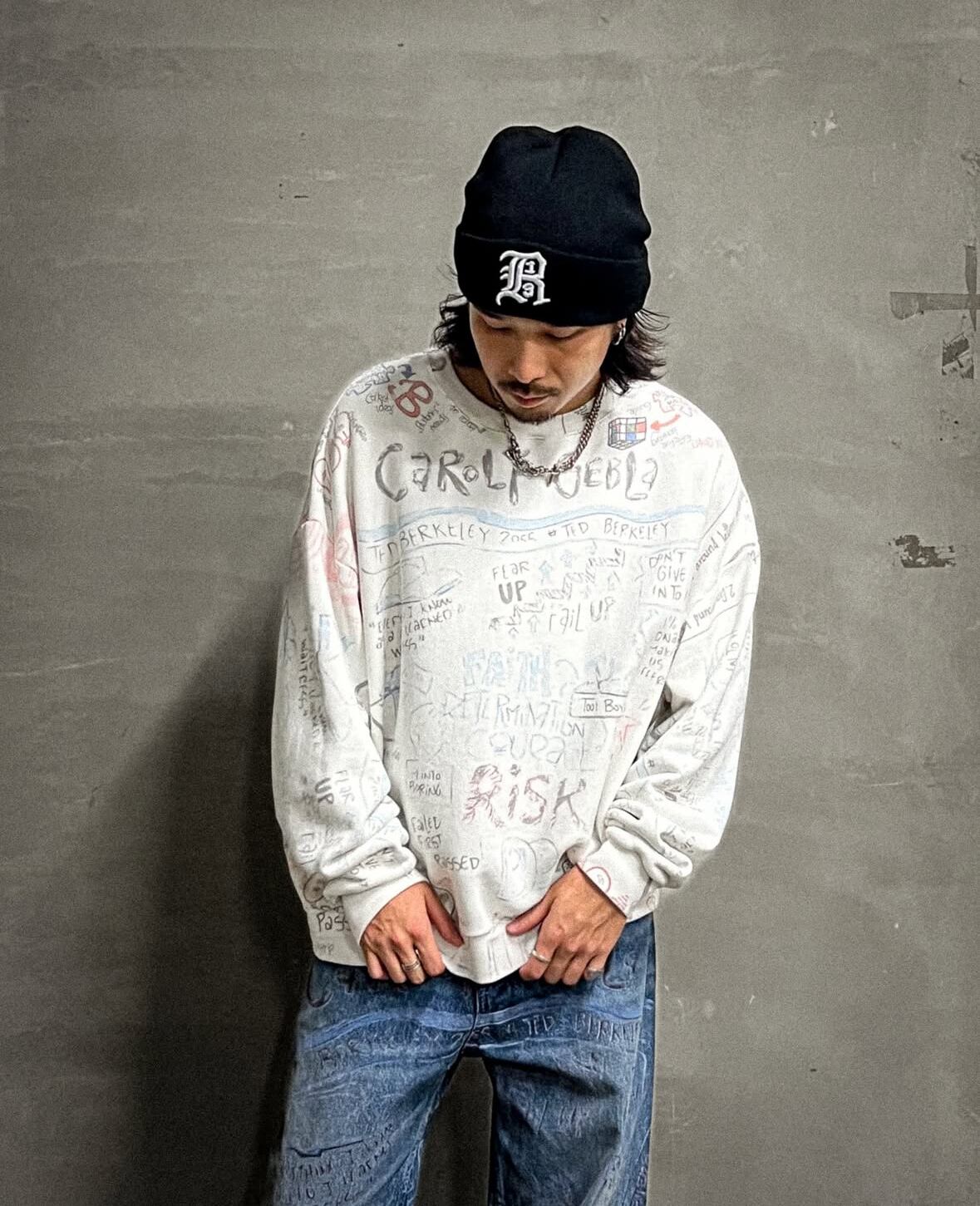 The hand-drawn illustration has an eye-catching design that stands out. The silhouette is regular, making it easy to wear and recommended for street coordination. It is recommended for those who like a unique style.