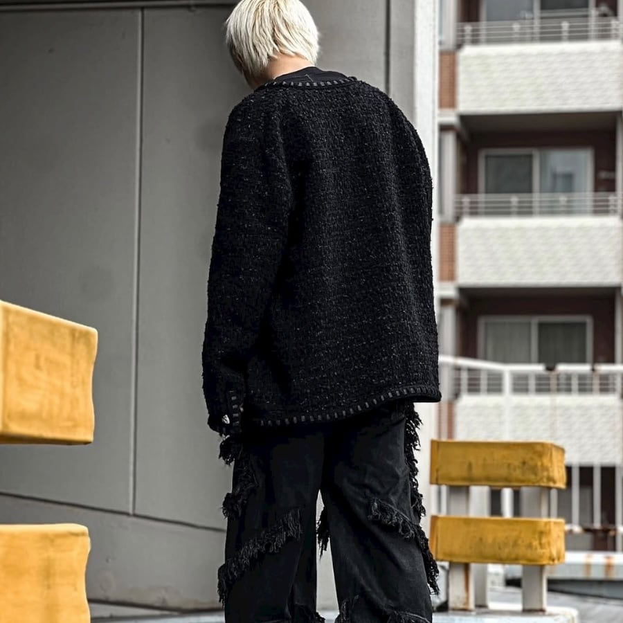 地球上で戦争や紛争の絶えない混沌とした状況下、その象徴。 ミリタリーアイテムを否定し、解体、破壊、War is over! If you want it.のメッセージを込め、ビンテージアイテムを100パーツ以上に及ぶパターン数に解体し再構築。