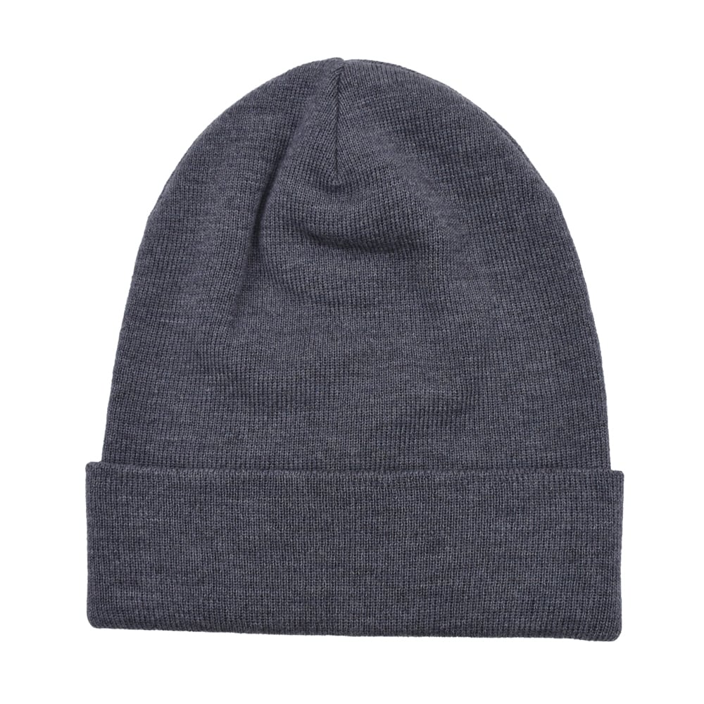 This is a simple knit beanie with a brand logo patch on the front. Its soft gray color and minimal design make it a versatile match for any outfit. With a comfortable fit, it is an essential item for styling in the fall and winter seasons. It works well for a range of styles, from casual to streetwear.