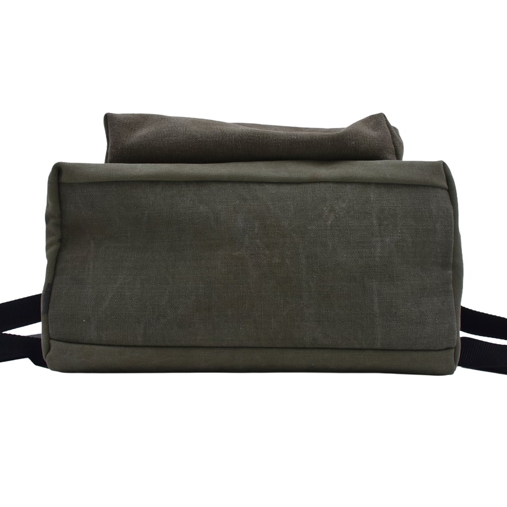 A waxed cotton backpack that becomes more characterful with use. Its military-inspired olive color is attractive and suits both casual and outdoor styles. The front pocket features a subtle 'readymade' logo patch as an understated accent. With a size that's perfect for daily use, it is a versatile backpack suitable for both men and women.