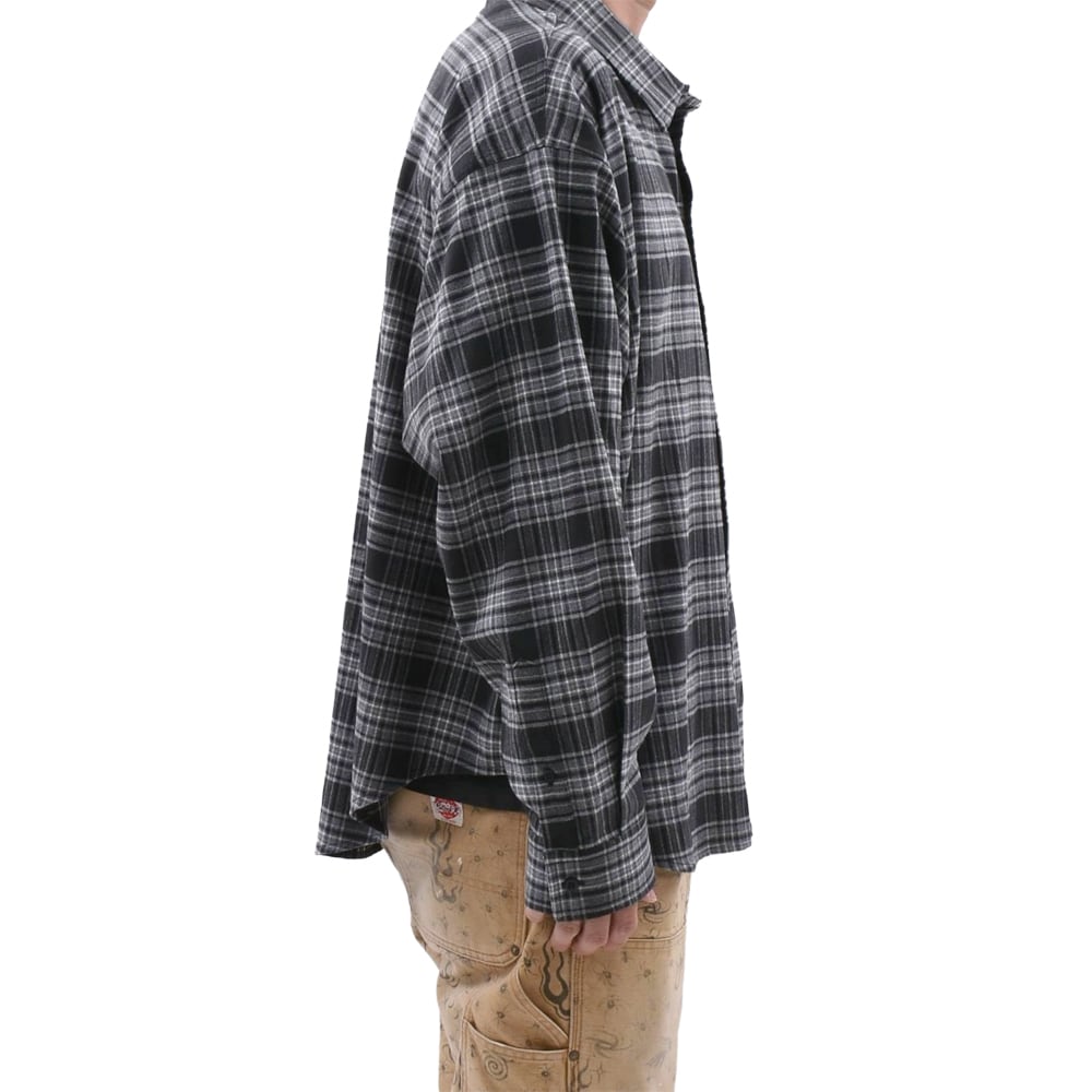 落ち着いた雰囲気のチェック柄が魅力のオーバーサイズシャツ。