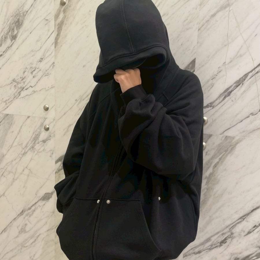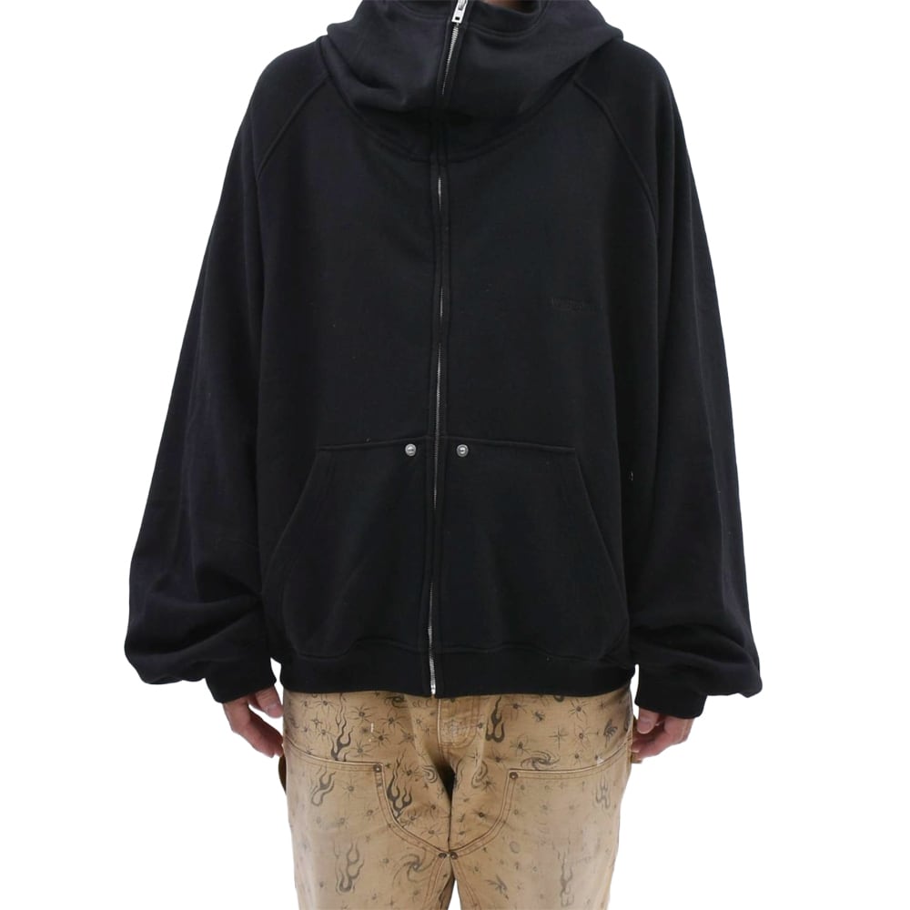 【WE11DONE】BLACK MENS SNAP-DETAIL JERSEY HOODED ZIP