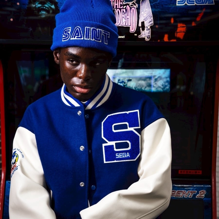 A unique collaboration between Sega's culture and SAINT Mxxxxxx- Boldly designing the brand name 'SAINT' with Sega's official font, which everyone has seen at least once- Using Sega Blue, symbolic of Sega, as the key colour to assert a special presence- A special visual where the aesthetics of SAINT Mxxxxxx intersect with the culture Sega has cultivated over the years