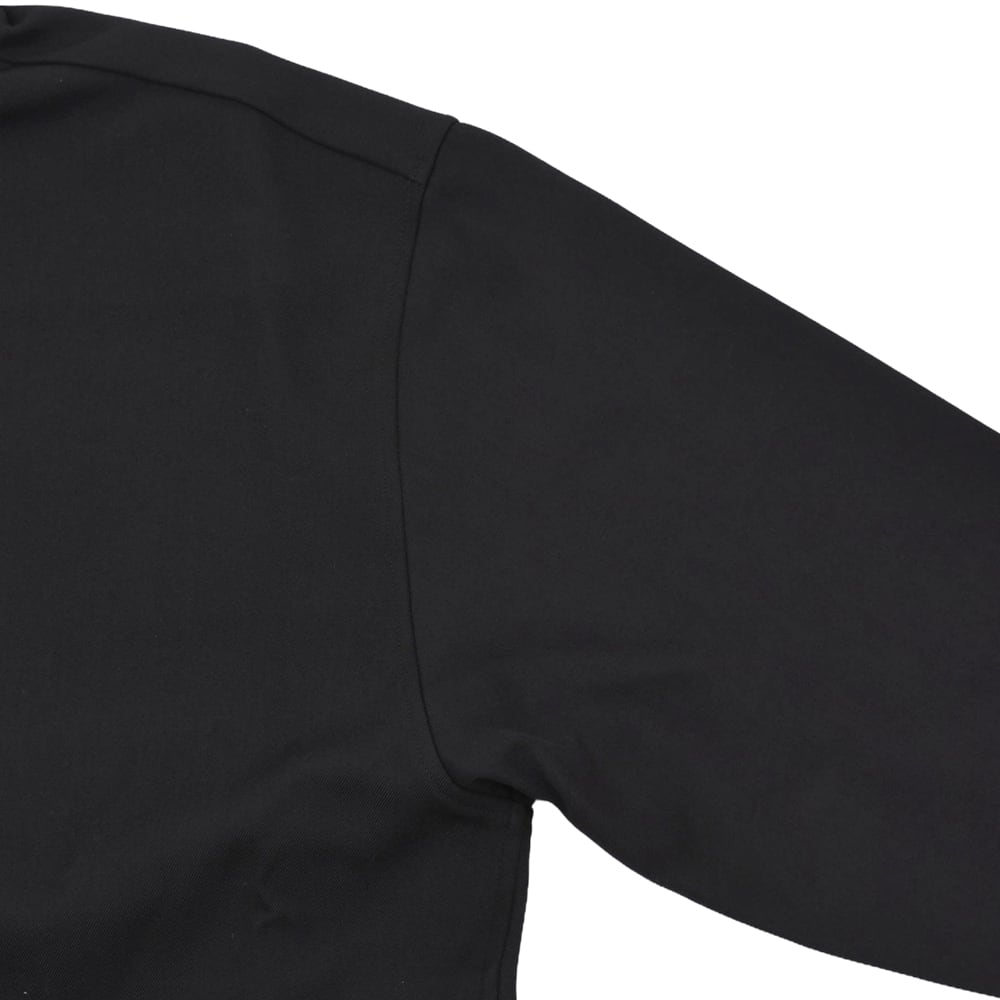 A black shirt with a simple and sophisticated charm. Its minimalist design makes it a versatile item that blends well with any style. The moderately relaxed silhouette ensures comfort, and it looks well balanced whether tucked in or left out. It can be worn on its own, as an inner layer, or as a light cover-up.