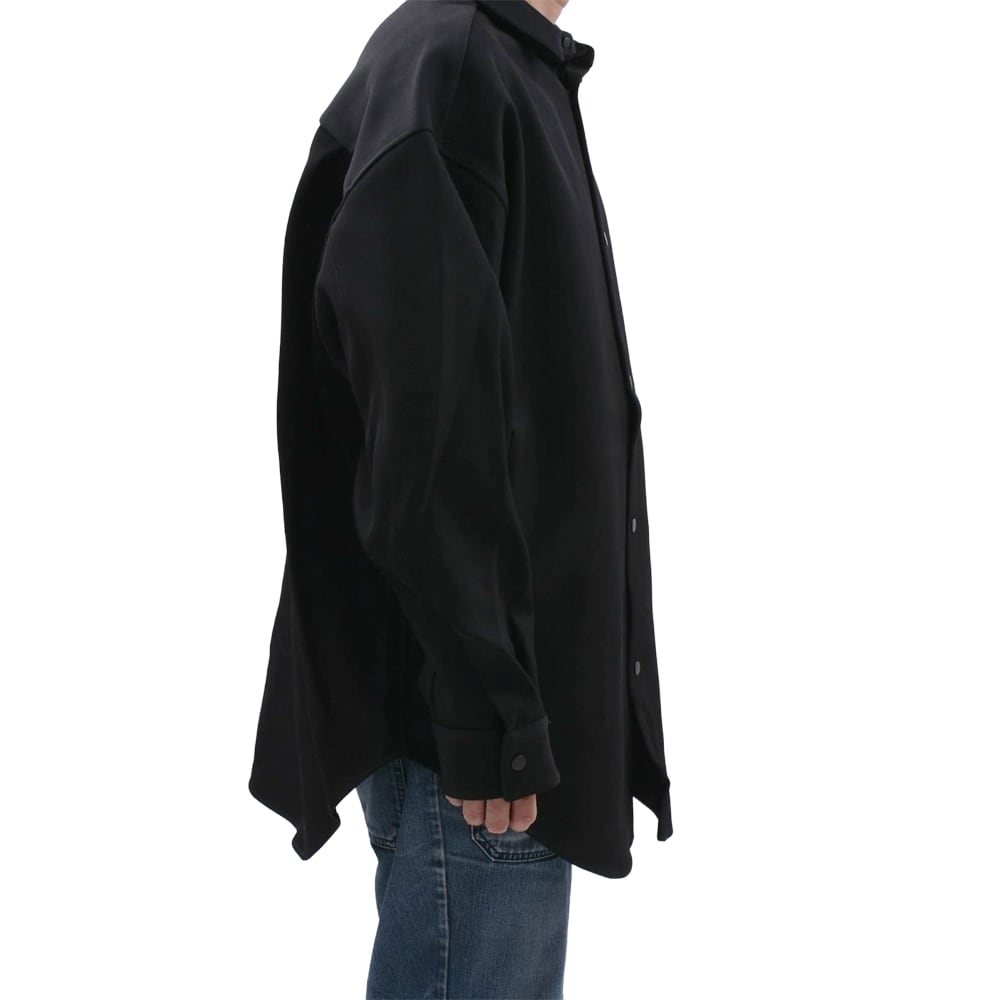 シンプルで洗練された雰囲気が魅力のブラックシャツ。無駄のないミニマルなデザインで、どんなスタイルにも馴染む万能アイテムです。