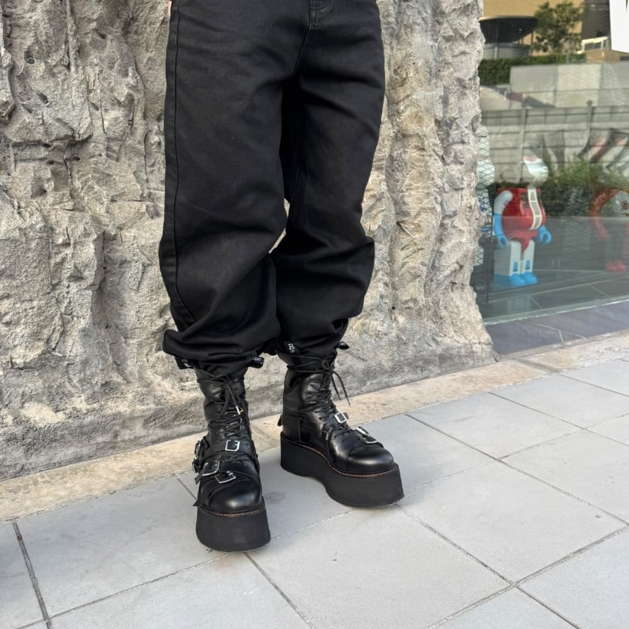 厚底ソールと重厚なバックルストラップが放つインパクトは、まさにロックテイストの極み。