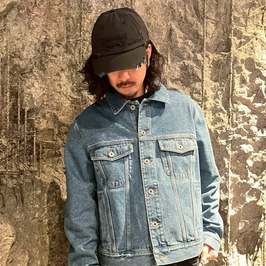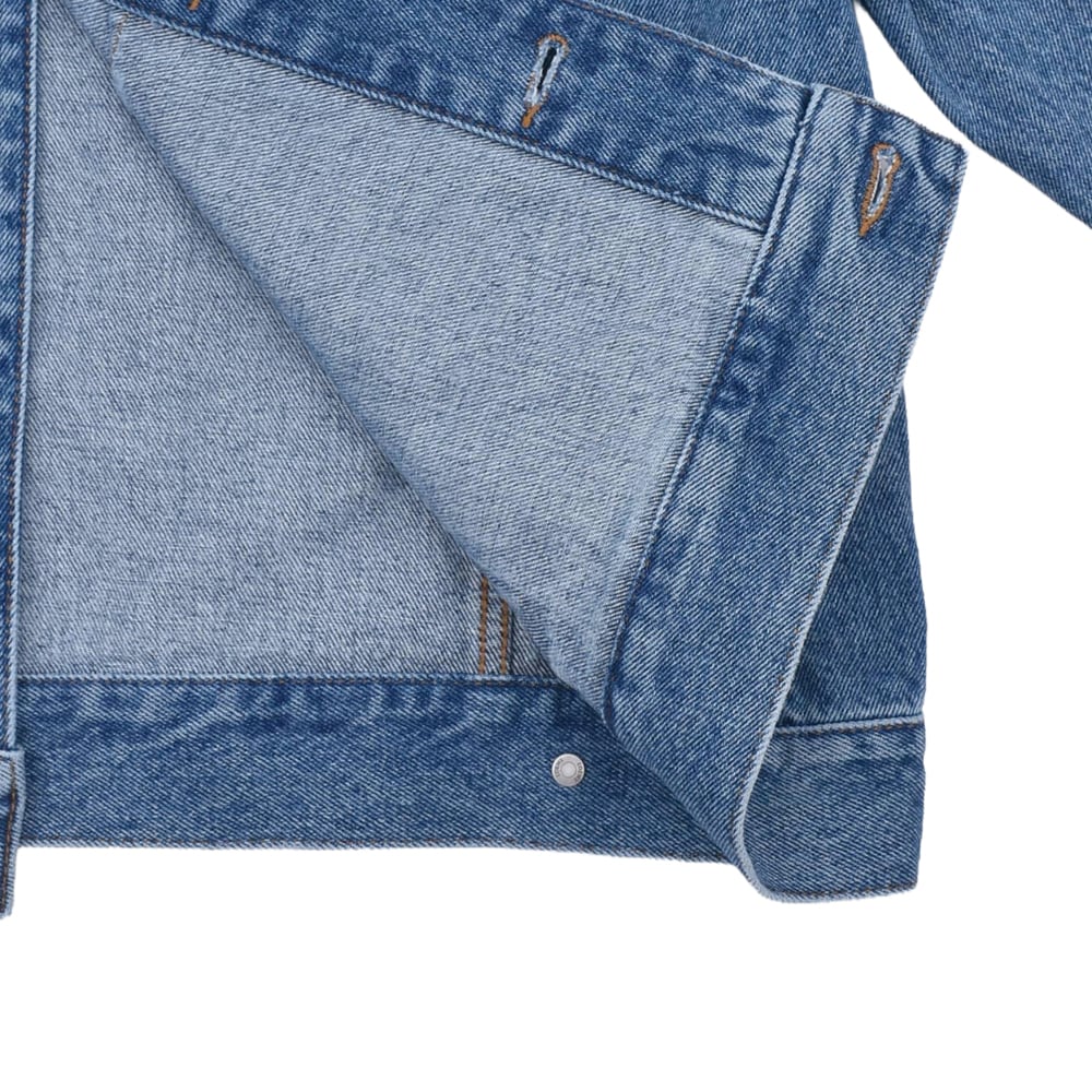 ミディアムウェイトのウォッシュドコットンデニムを採用したジャケット。肘にアナグラム刺繍が施されています。
