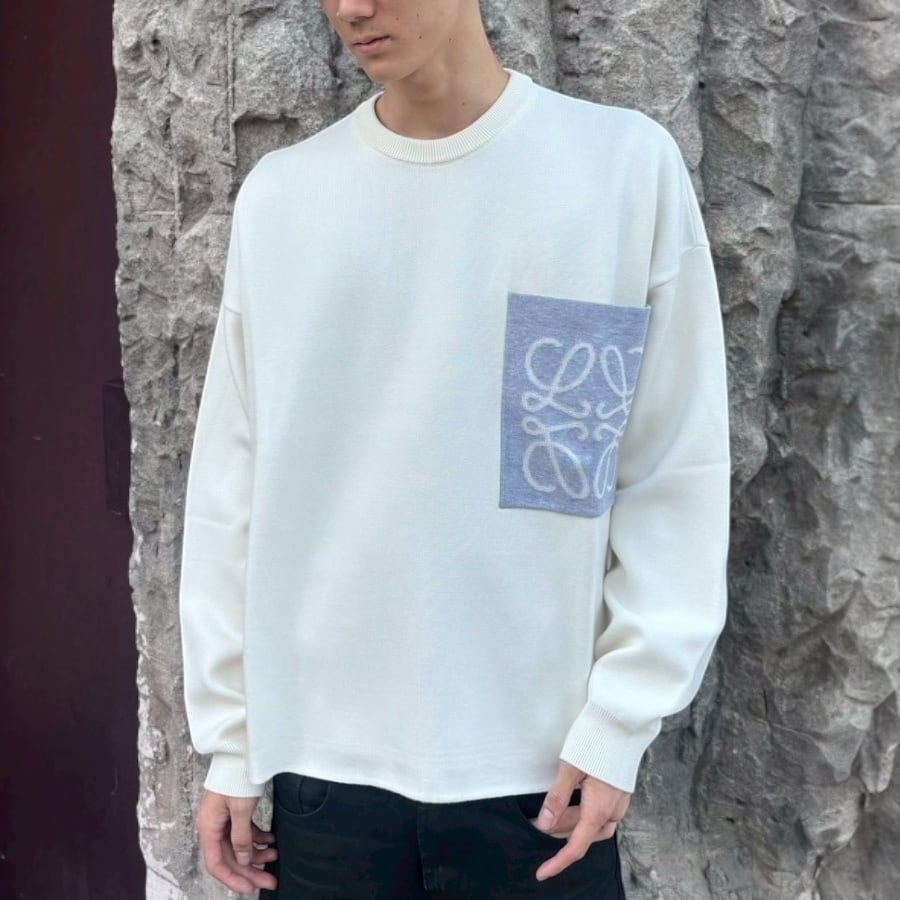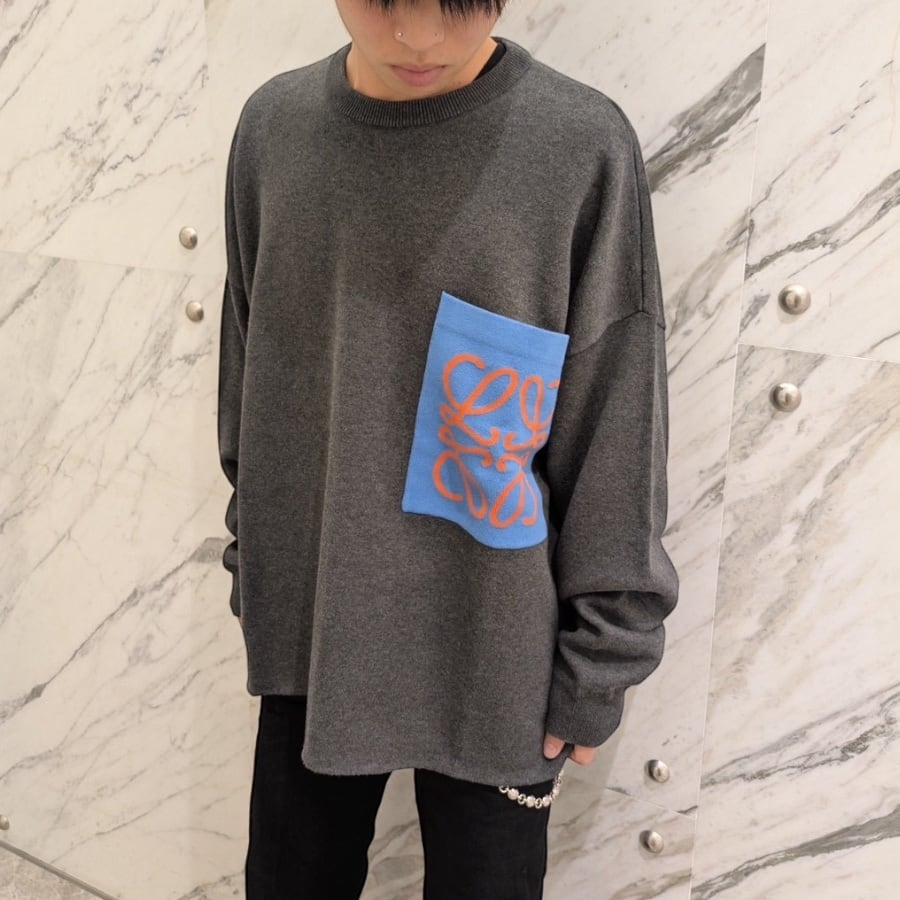 ミディアムウェイトのコットンブレンドを採用したセーター。胸元のパッチポケットにアナグラムのインターシャが施されています。