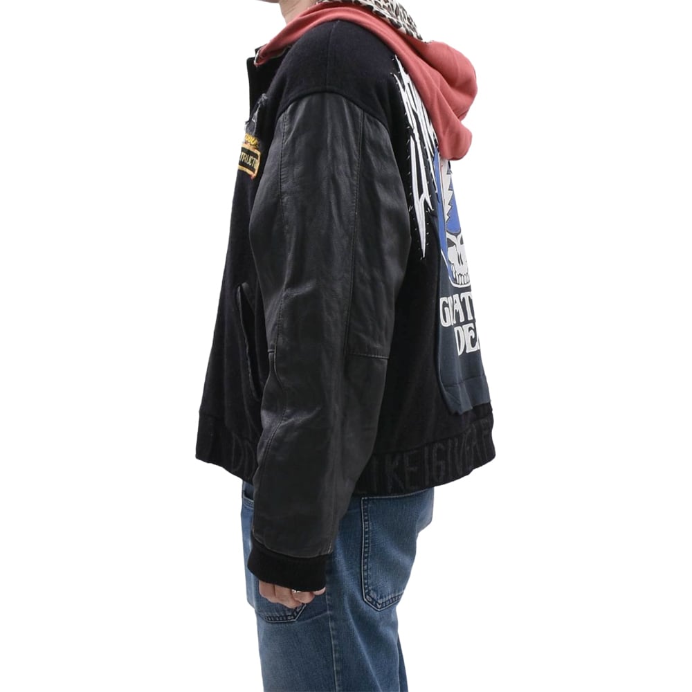袖はレザー素材、ボディはメルトン生地で質感のコントラストも魅力。