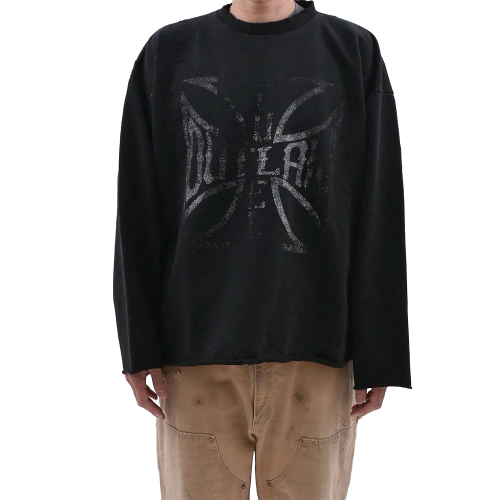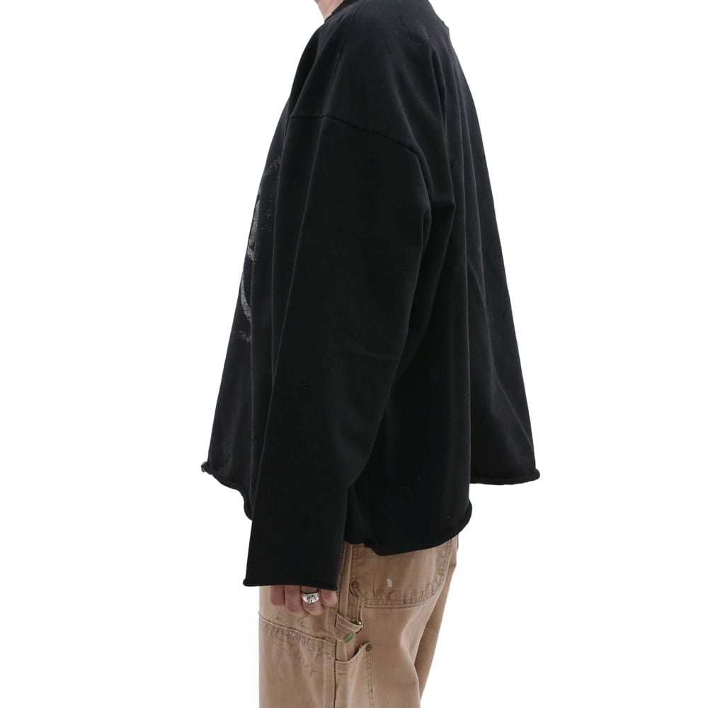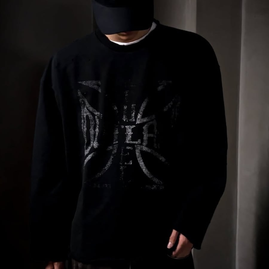 ヴィンテージ感あふれるロンT。フロントのグラフィックがストリート感のあるアートな仕上がりになっています。程よいダメージ加工や色褪せが、リアルなユーズドライクな雰囲気を演出。ゆったりとしたシルエットで、ラフに着こなすだけでコーディネートの主役になる一枚です。デニムやカーゴパンツとの相性も抜群。