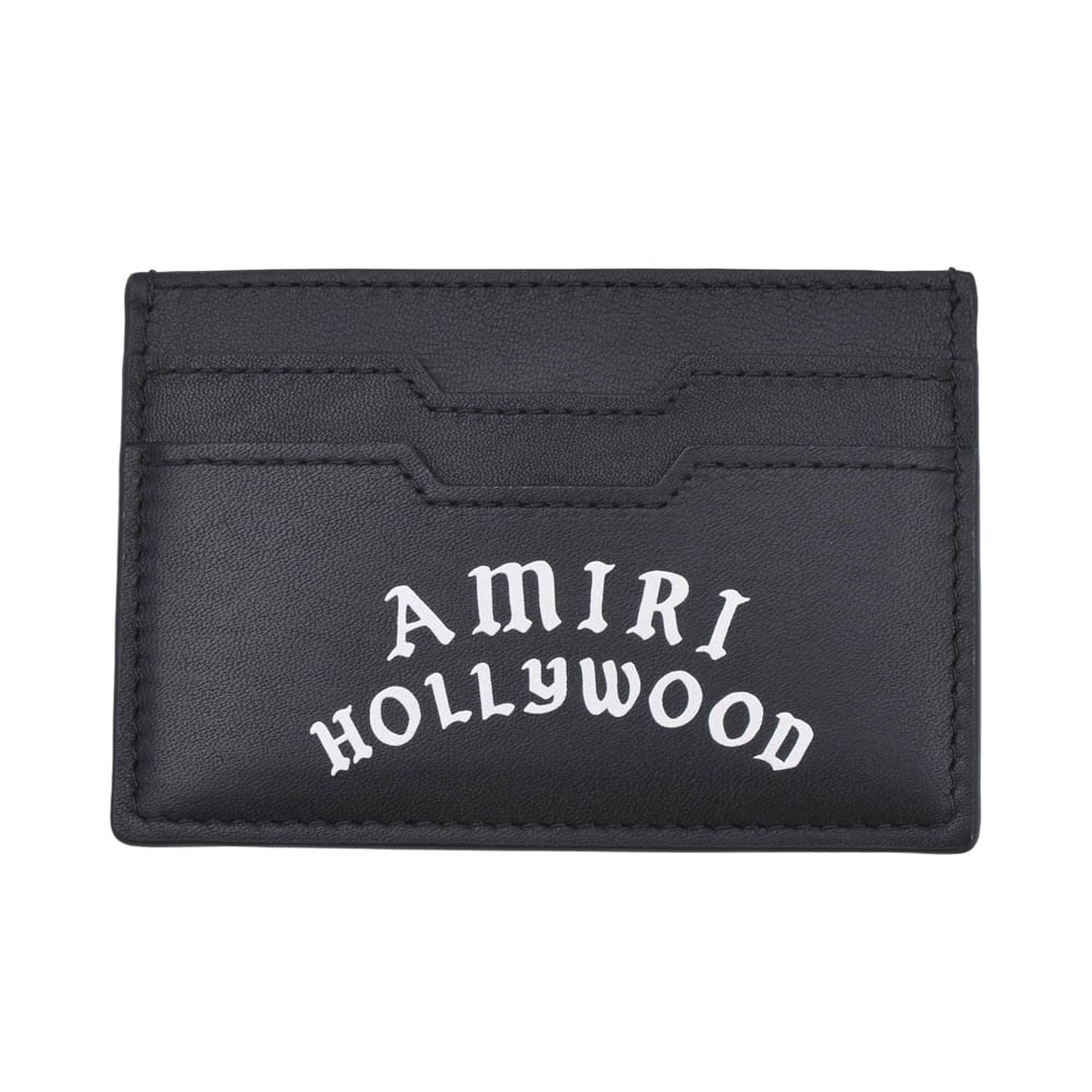 シンプルなブラックレザーに「AMIRI HOLLYWOOD」の大胆なロゴが映える、存在感抜群のカードケース。