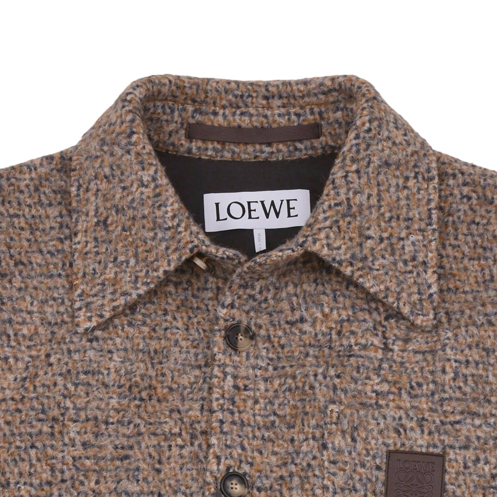 An overshirt made from medium-weight brushed wool and llama blend. It features a micro-check pattern. Regular fit, regular length Classic collar Front button fastening, buttoned cuffs Patch pocket on the chest Leather patch with LOEWE anagram embossed on the chest pocket