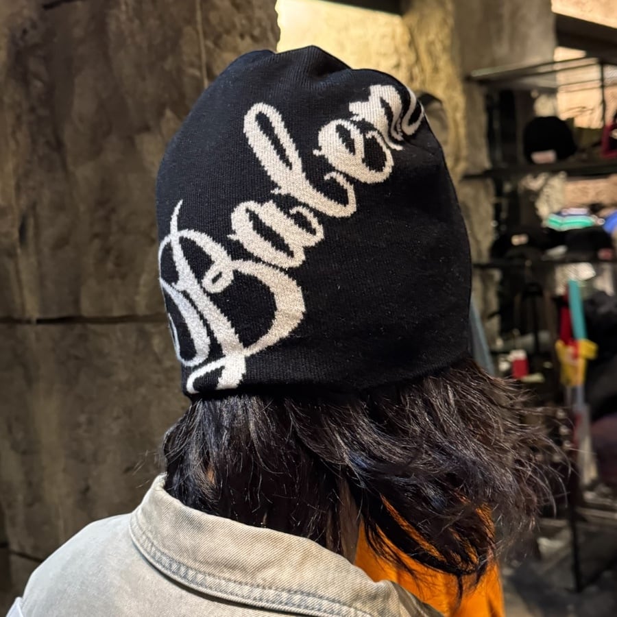 BALENCIAGAのロゴが大胆にデザインされたニットビーニー。