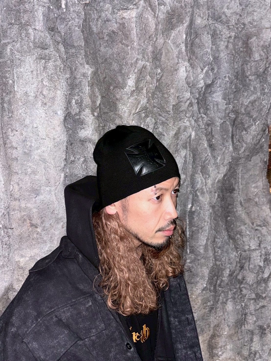 【VETEMENTS】LEATHER BIKER CROSS LOGO BEANIE
