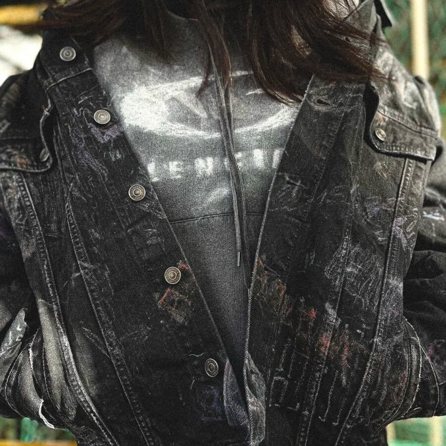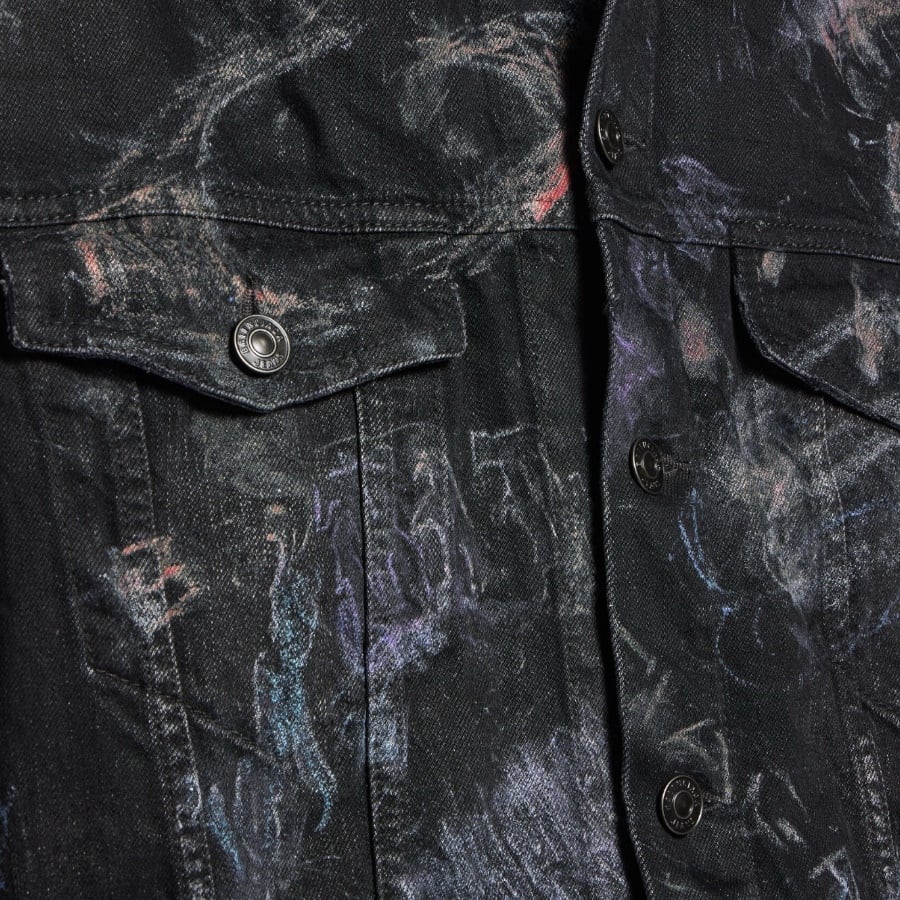 A jacket featuring a dark-tone pattern with a sense of weight, exuding a quiet presence. The carefully calculated color scheme and refined design give a military-inspired piece an urban, high-quality impression. Its minimalistic and uncluttered appearance highlights the texture of the material and the beauty of the silhouette, adding sophistication to the overall styling. Versatile enough for both casual and dressy mixes, this luxurious piece elevates any outfit simply by wearing it.