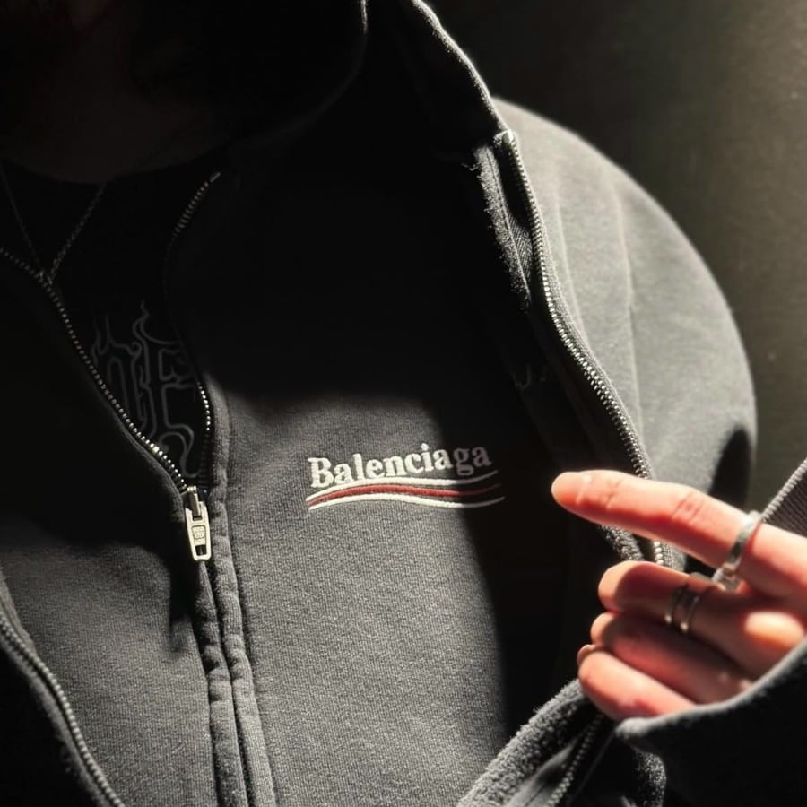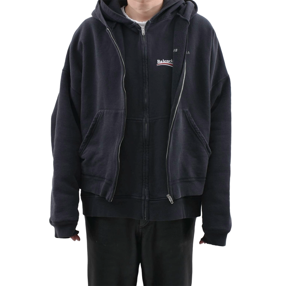 バレンシアガを象徴するオーバーシルエットが際立つジップフーディトップス。