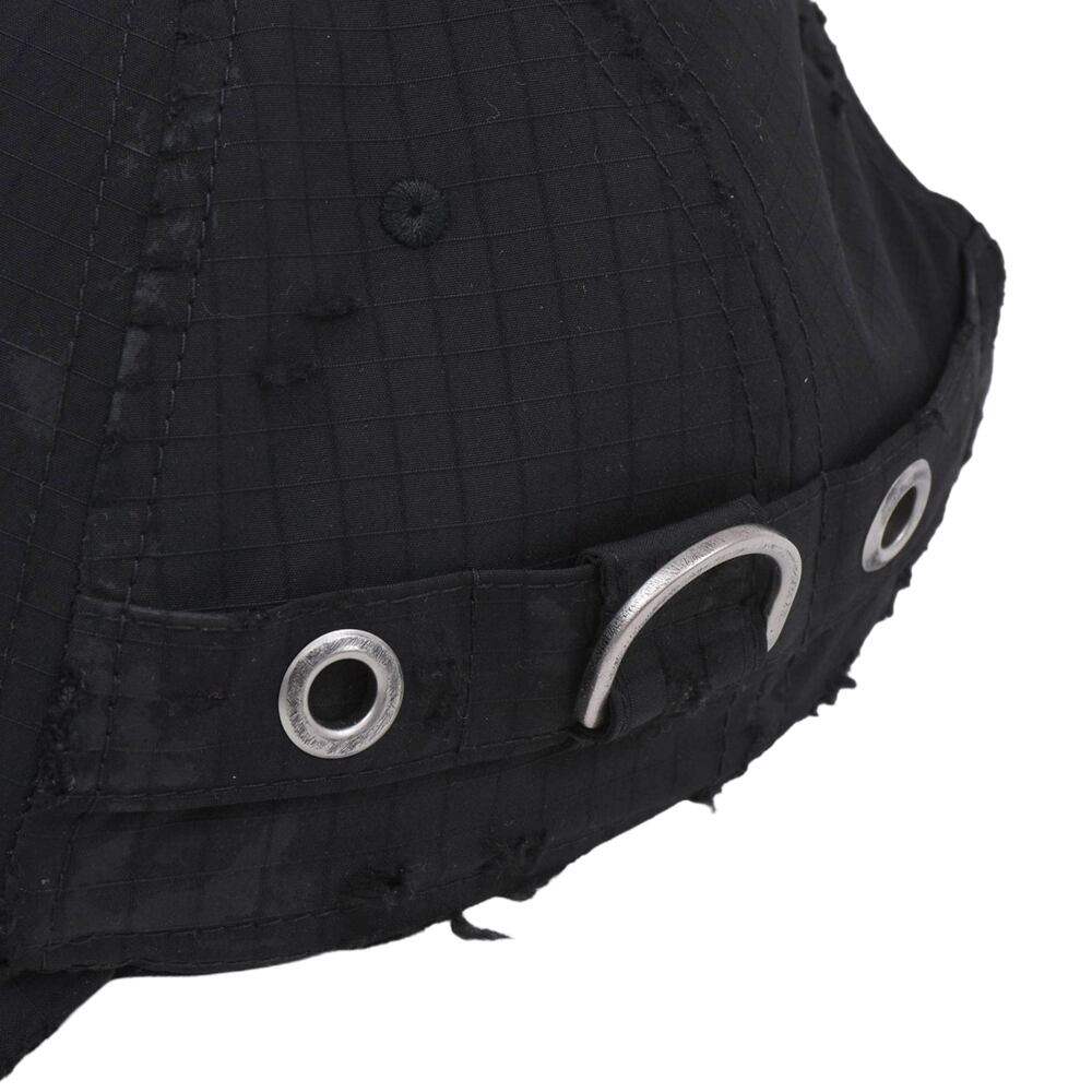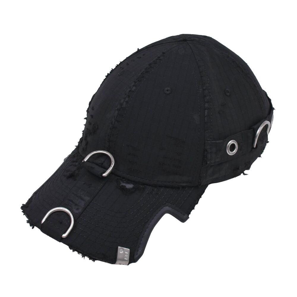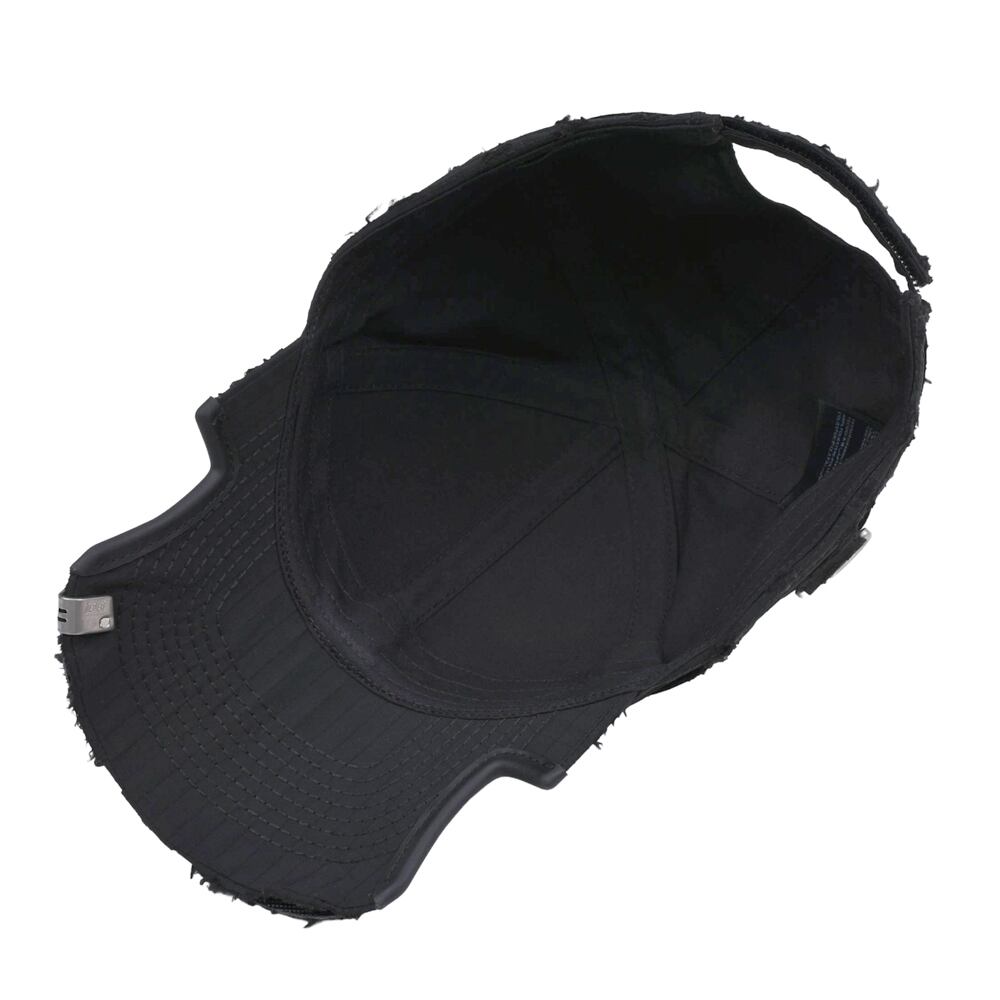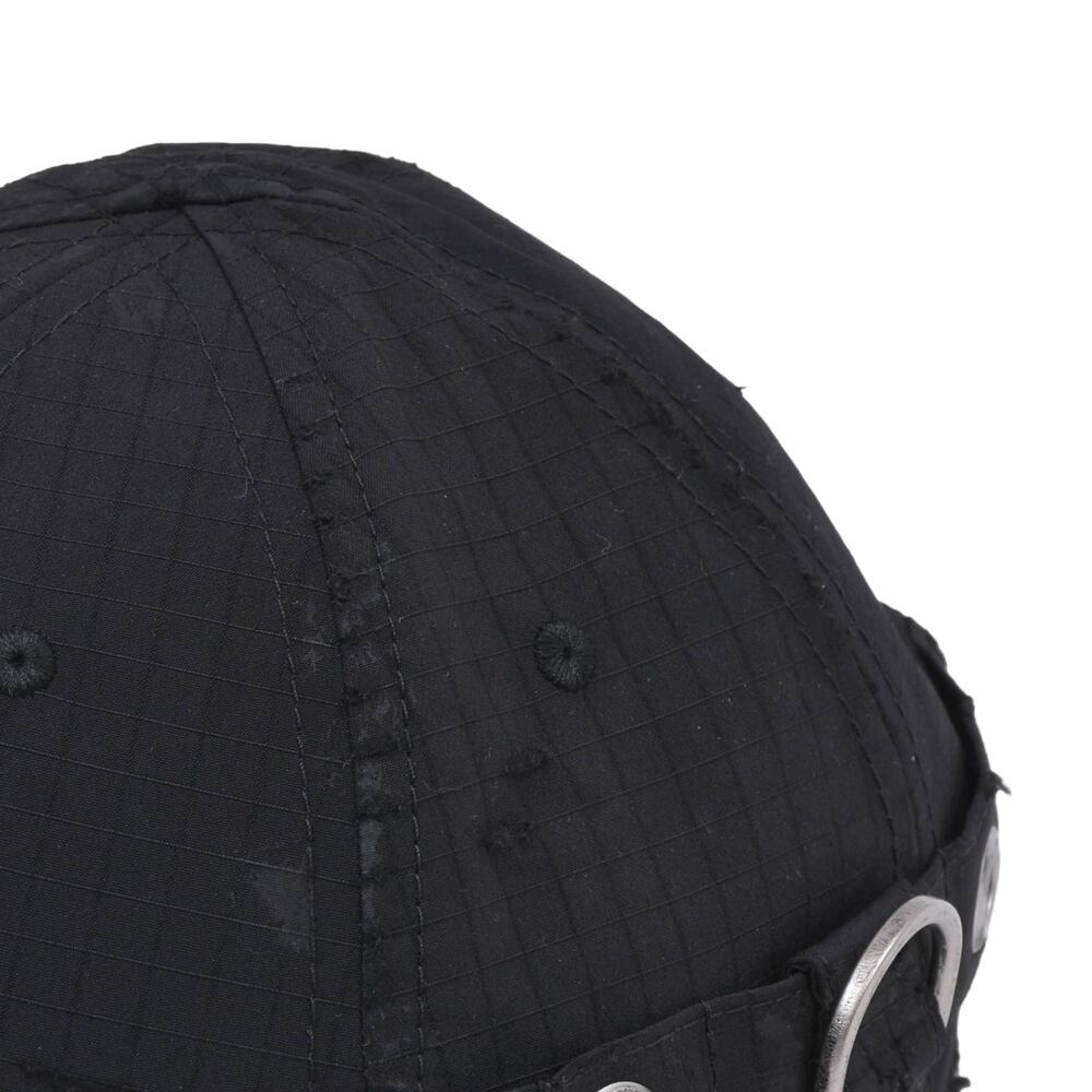 A cap featuring an embroidered logo on the front that stands out. The overall distressed finish creates a relaxed, vintage-like appearance. Despite its basic colour, it adds an edge to any outfit when worn. It serves as an accent for simple outfits and is a versatile item that works well from street style to high fashion.