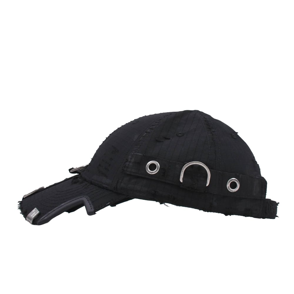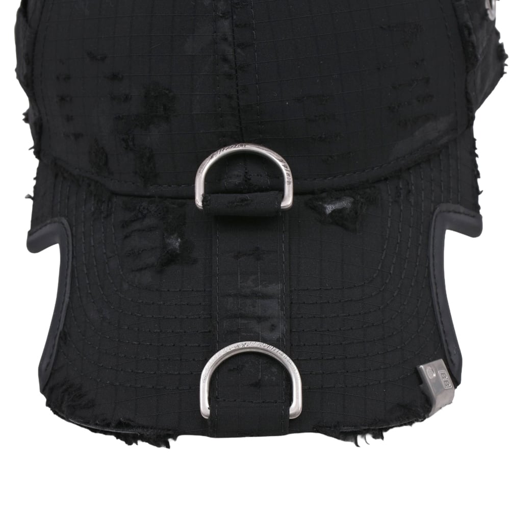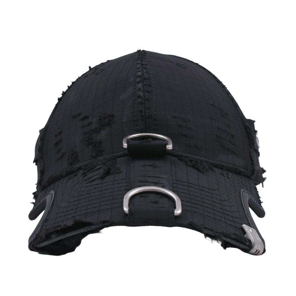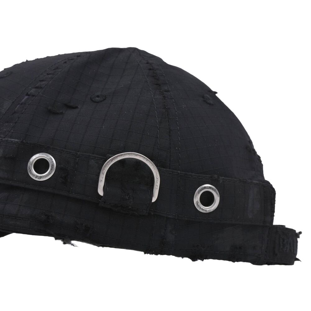 A cap featuring an embroidered logo on the front that stands out. The overall distressed finish creates a relaxed, vintage-like appearance. Despite its basic colour, it adds an edge to any outfit when worn. It serves as an accent for simple outfits and is a versatile item that works well from street style to high fashion.
