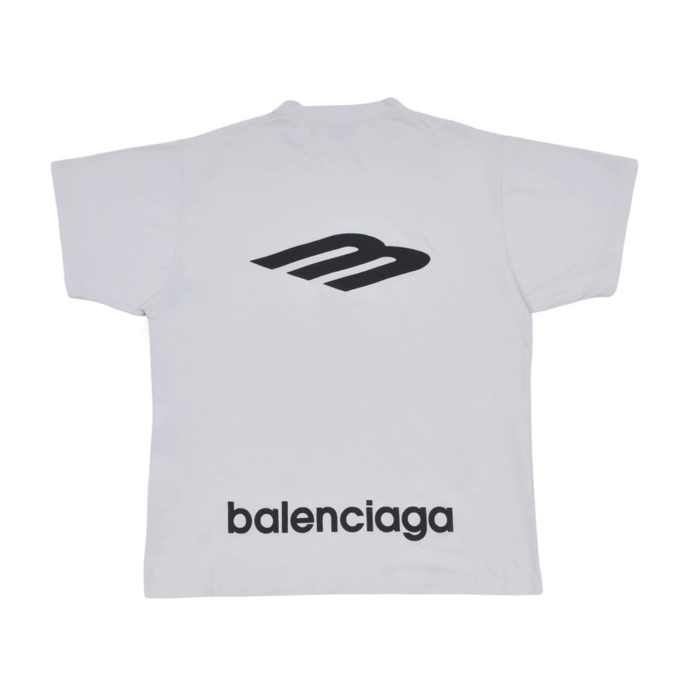 This oversized T-shirt encapsulates the brand's aesthetic, featuring the bold "3B sports icon" logo—a new symbol of Balenciaga—prominently on the back. While the front remains minimalist, the back showcases sporty graphics and a brand logo near the hem, creating a powerful visual impact from behind. Crafted from high-quality cotton jersey, it offers a soft feel against the skin and the meticulously designed loose silhouette characteristic of Balenciaga. This iconic piece elevates a street-style staple to luxury status, making it an essential addition to any modern wardrobe.