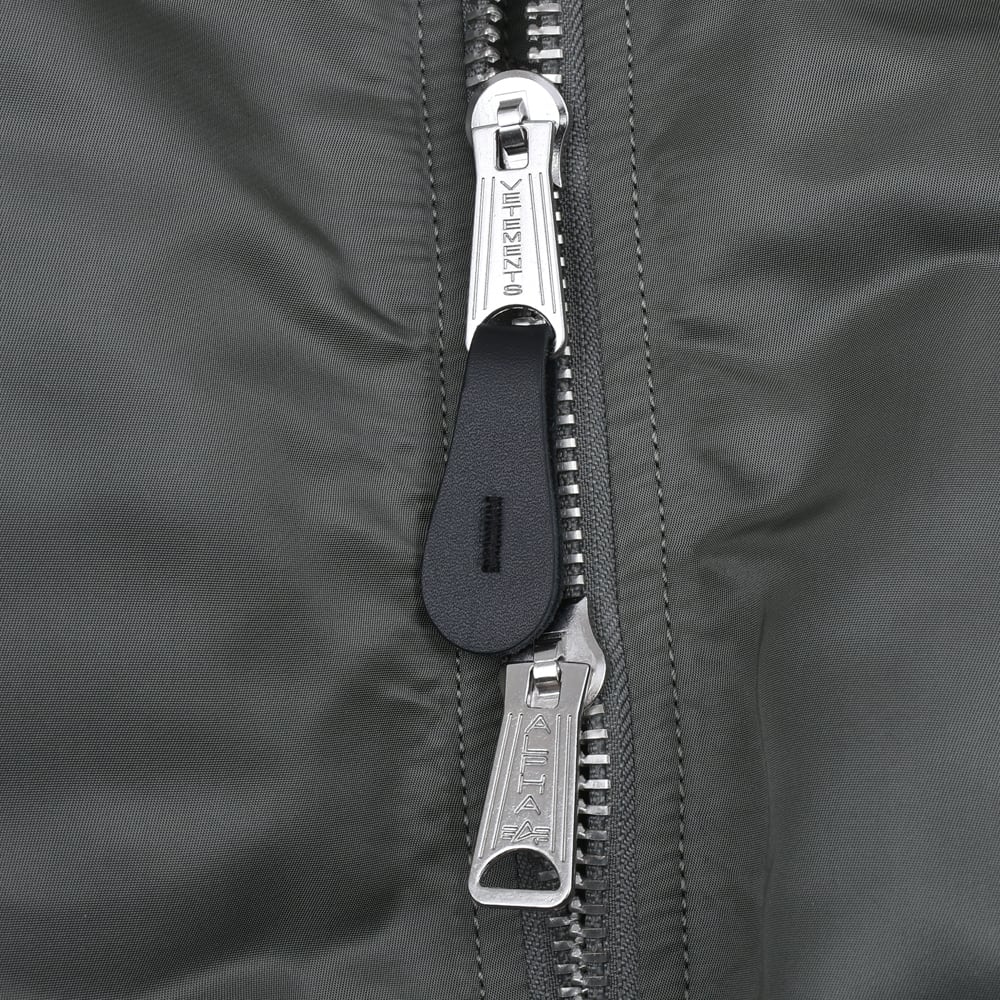 光沢感のあるタフなナイロン素材と、ヴィンテージ感漂うセージグリーンのコントラストが、都会的なミリタリースタイルを演出します。