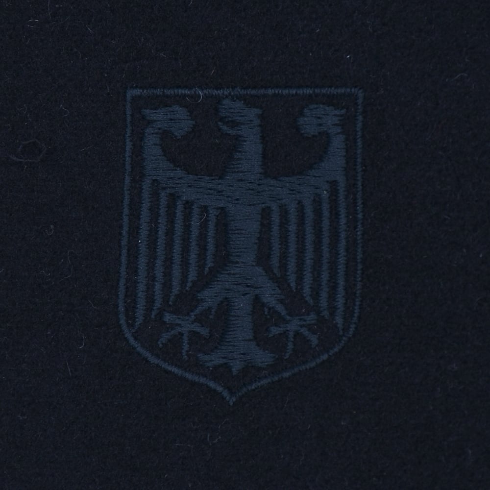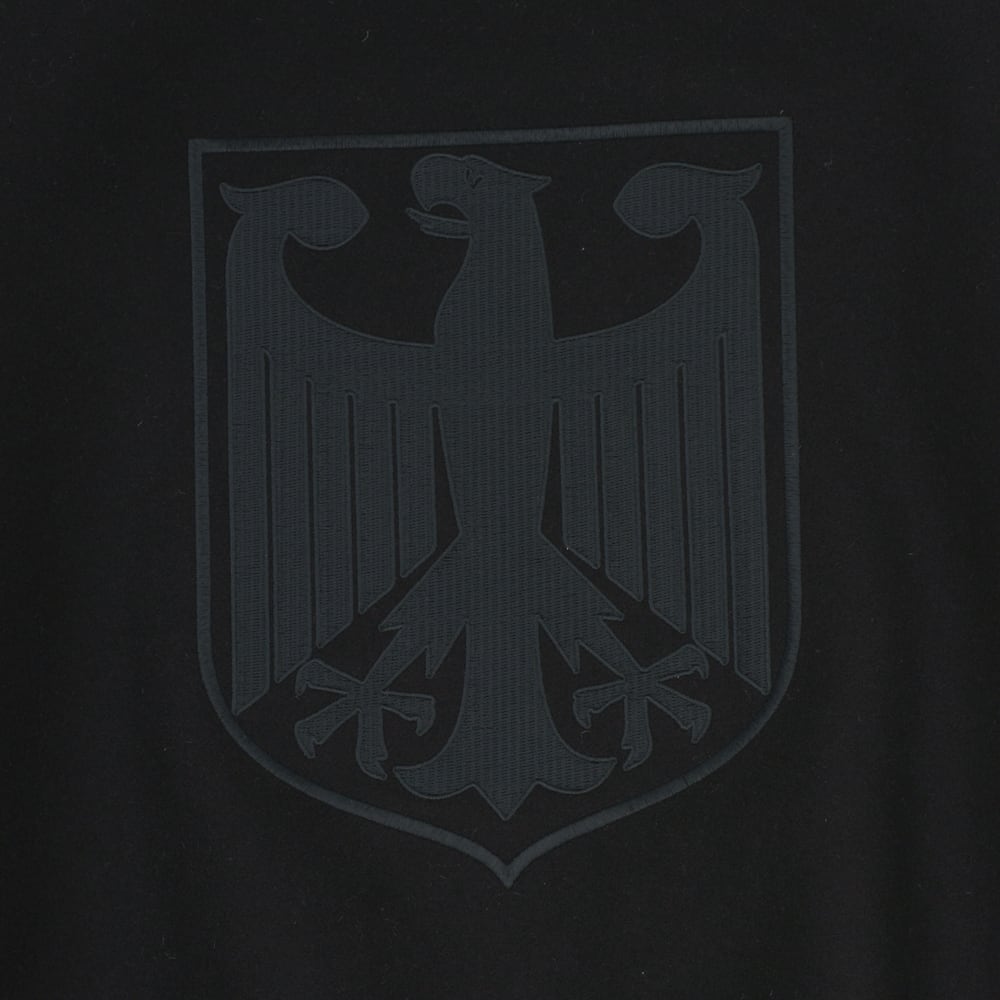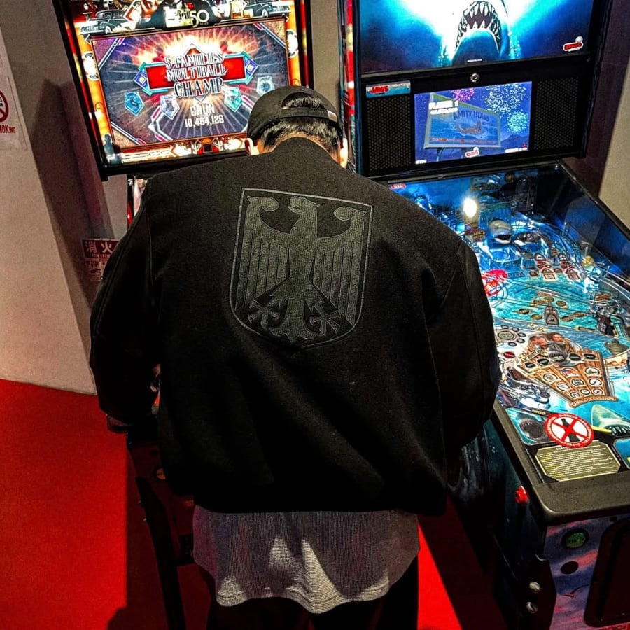 オールブラックで統一されたストイックなカラーリングに、両袖に施された立体的な「クロス刺繍」が圧倒的な存在感を放ちます。