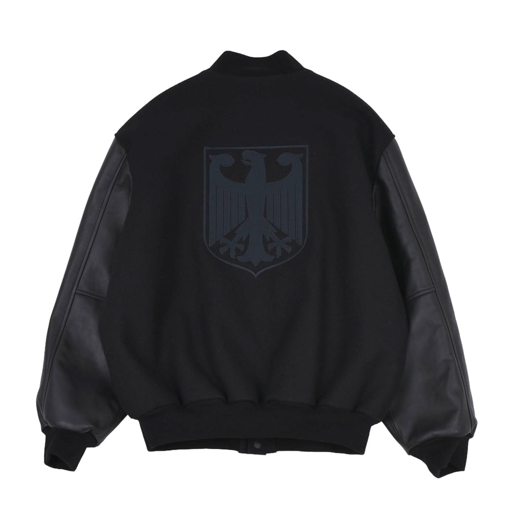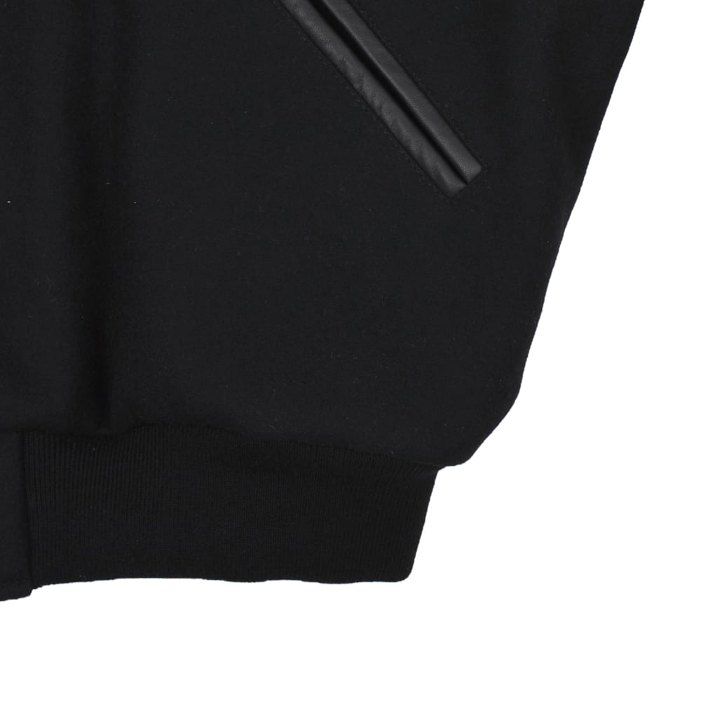 重厚感のあるメルトンウールと、上質なレザーを組み合わせた高級感溢れるバーシティジャケット。