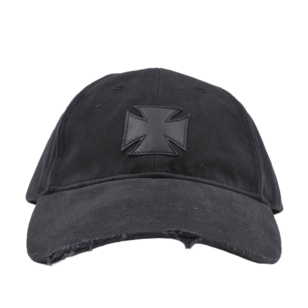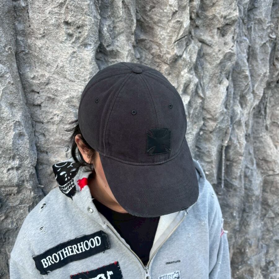 This leather cap exudes a powerful sense of gravity, featuring the "Biker Cross"—VETEMENTS' latest iconic motif—prominently on the front. Crafted from supple, premium black leather, the body of the cap is designed to mold to the wearer over time, offering a unique patina and personalized fit. The tonal cross patch on the front adds a dimensional, textured layer to the minimalist all-black aesthetic, blending dark gothic elements with high-end luxury. By reimagining a street staple through exquisite materials and an edgy design lens, this cap serves as a commanding accessory that instantly elevates any sophisticated urban look.