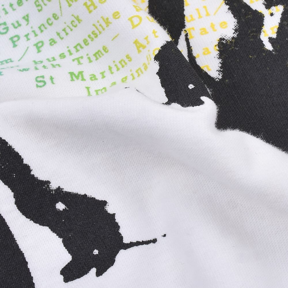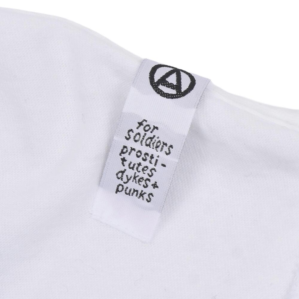 フロントにはアーティスティックかつ刺激的なグラフィックを配し、肩やサイドに見られる切りっぱなしのシーム(継ぎ目)デザインが、DIY精神溢れるパンクの質感を強調しています。