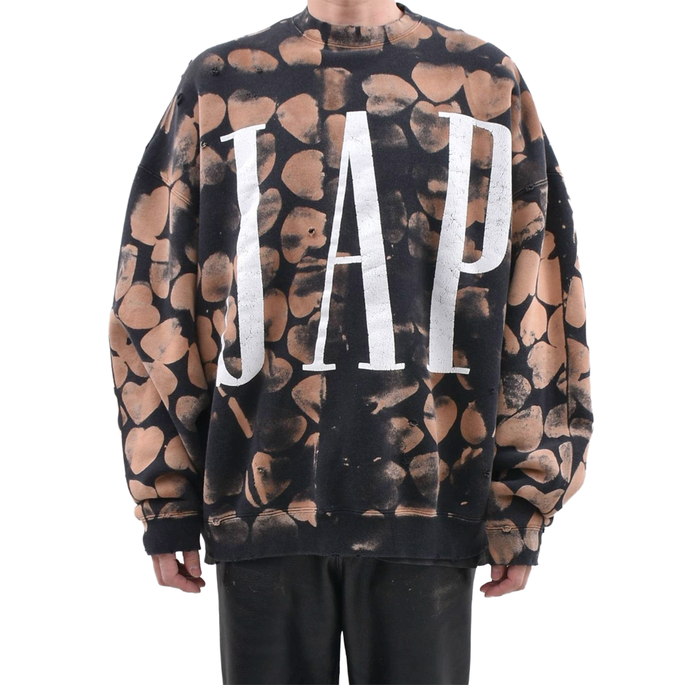 ムラ感のある染めとダメージ加工が、既製品にはない唯一無二の表情を演出。