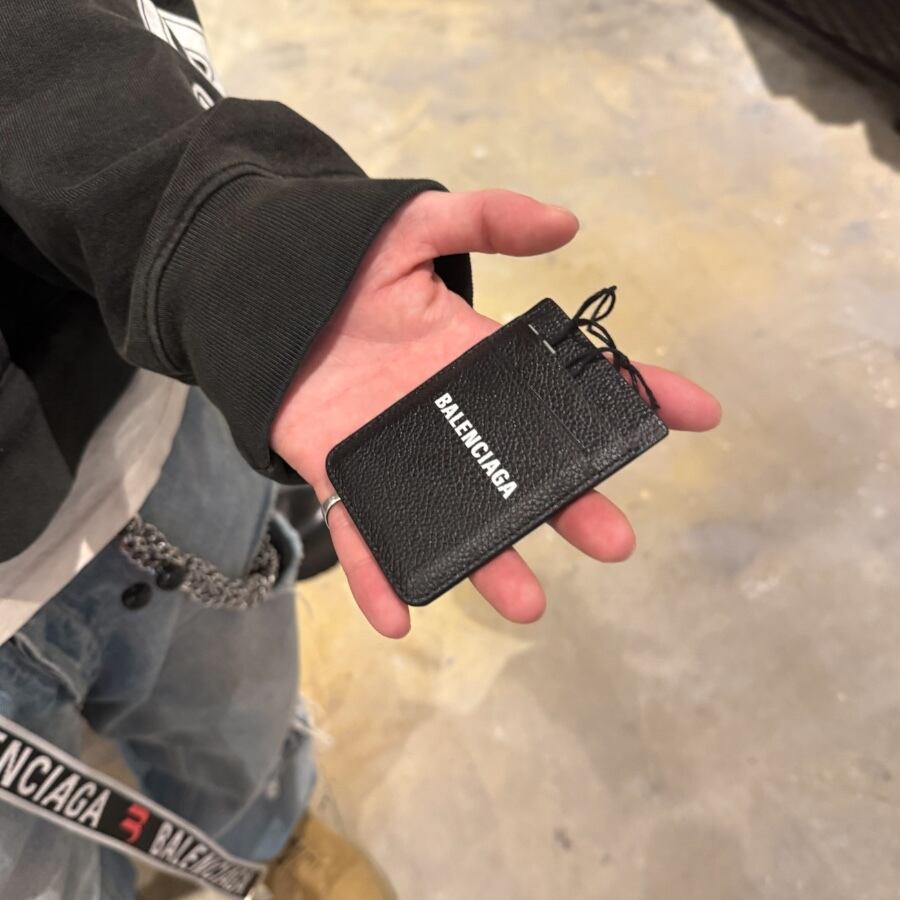 This Balenciaga card case features high-quality leather and a clean logo.