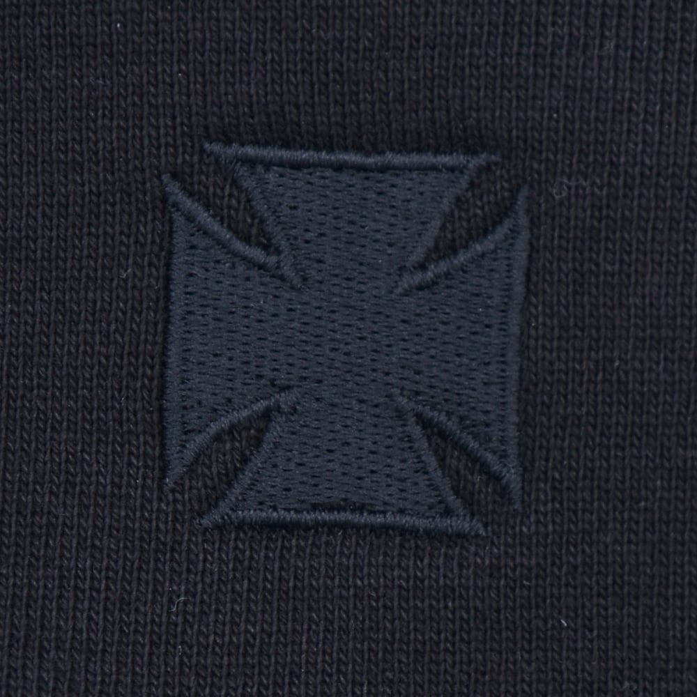 This long-sleeved T-shirt features an eye-catching, iconic cross logo on the front. The sleeves are also printed, creating a simple yet striking design. Its moderate thickness makes it versatile, whether worn alone or layered.