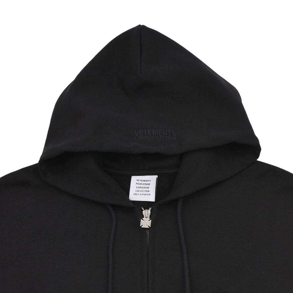 【VETEMENTS】LEATHER BIKER CROSS ZIP-UP HOODIE