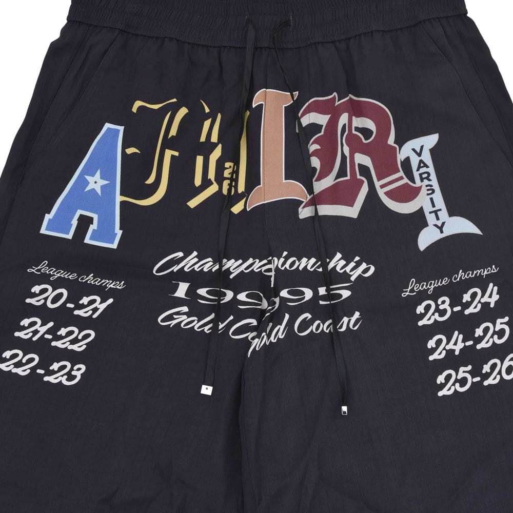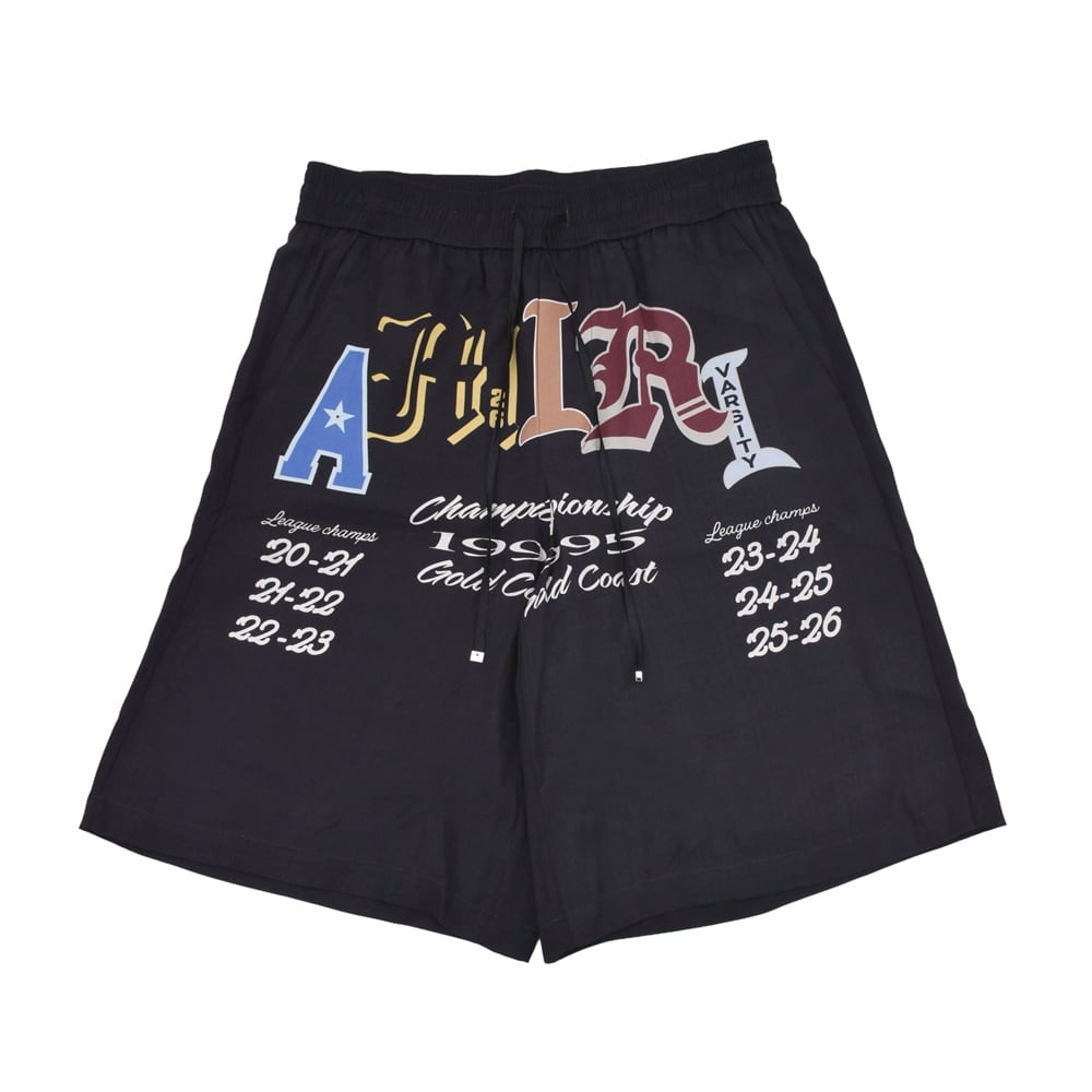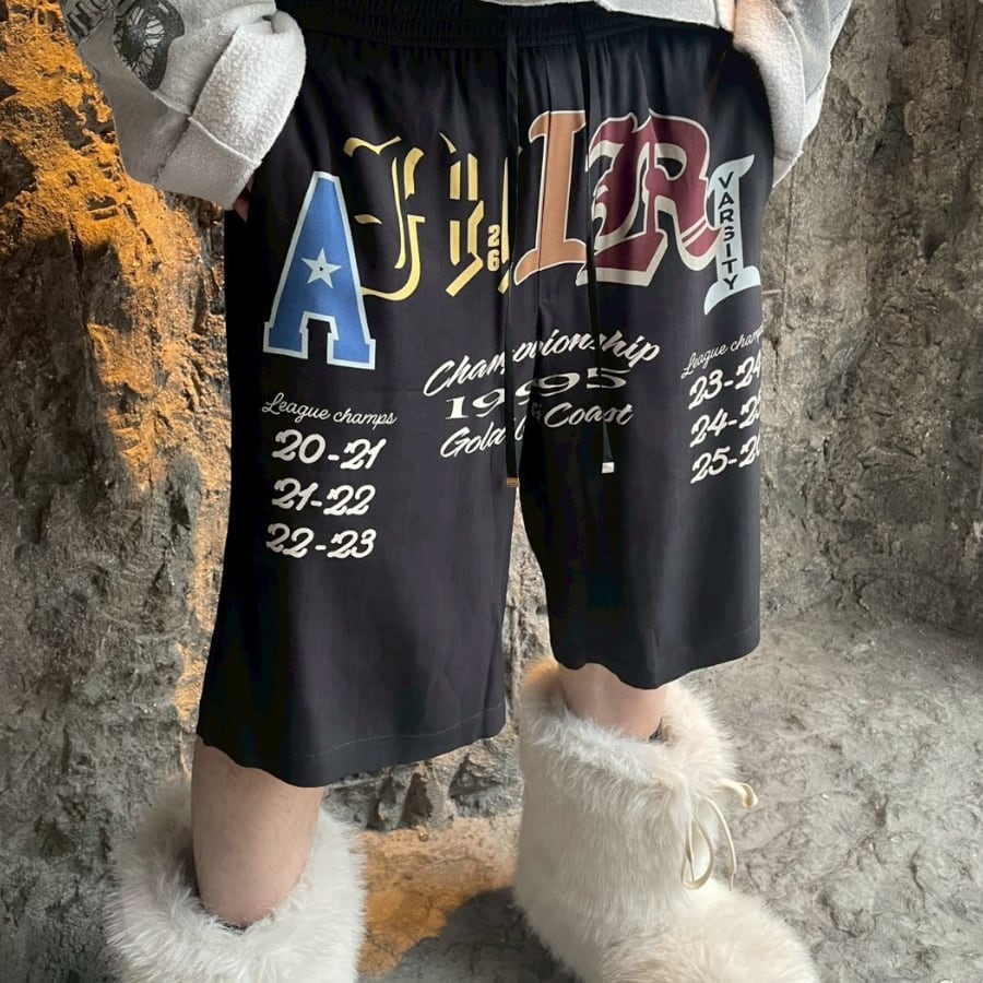 This piece condenses AMIRI's world by boldly mixing college fonts with the championship logo. While evoking a nostalgic feel like vintage clothing, the calculated silhouette and high-quality materials create a luxurious atmosphere. Simply pairing it with a plain white T-shirt completes a street style that exudes overwhelming individuality. The attention to detail makes these shorts a special piece that stimulates an adult sense of playfulness.