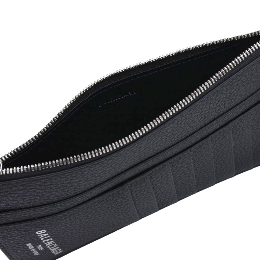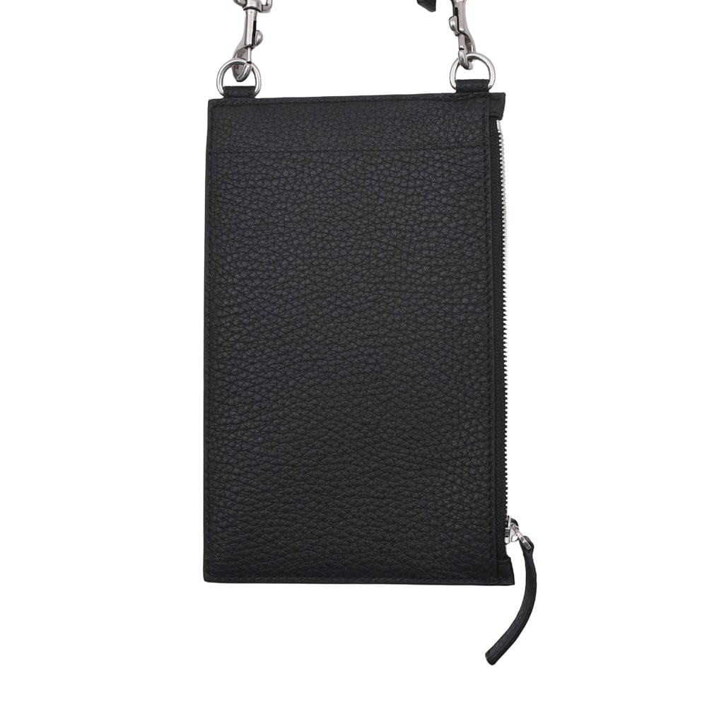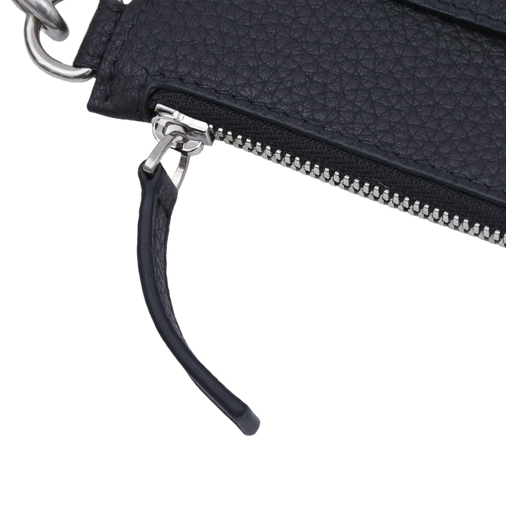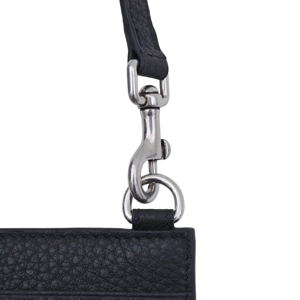 This is a card holder with a neck strap featuring Balenciaga's iconic logo. Made from high-quality grained calf leather with a textured finish, it is resistant to scratches and ideal for daily use. In addition to the L-shaped zip coin pocket, it features numerous card slots on the back, making it a functional 'fragment case' type. The strap is detachable, allowing it to be worn around the neck as an accessory, or used alone as a mini wallet tucked into a bag. This piece comes highly recommended for minimalists.